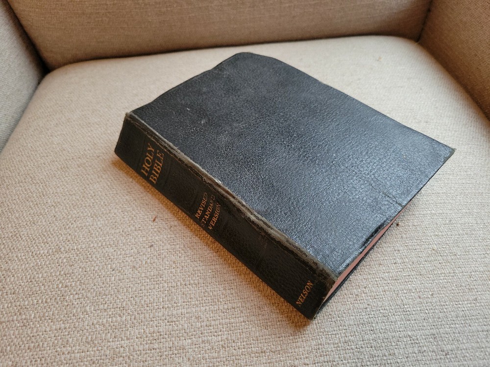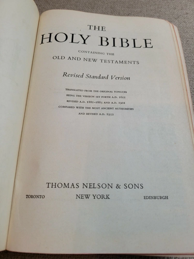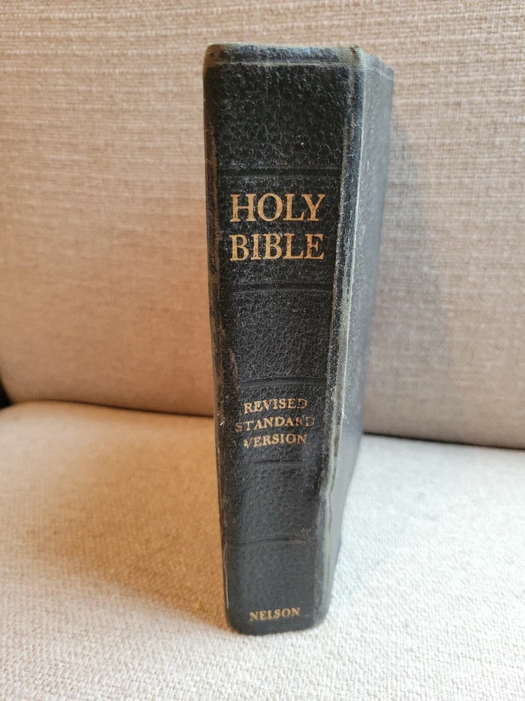 Holy Bible Nelson RSV Revised Standard Version BLACK Leather 1952 Vintage Color.