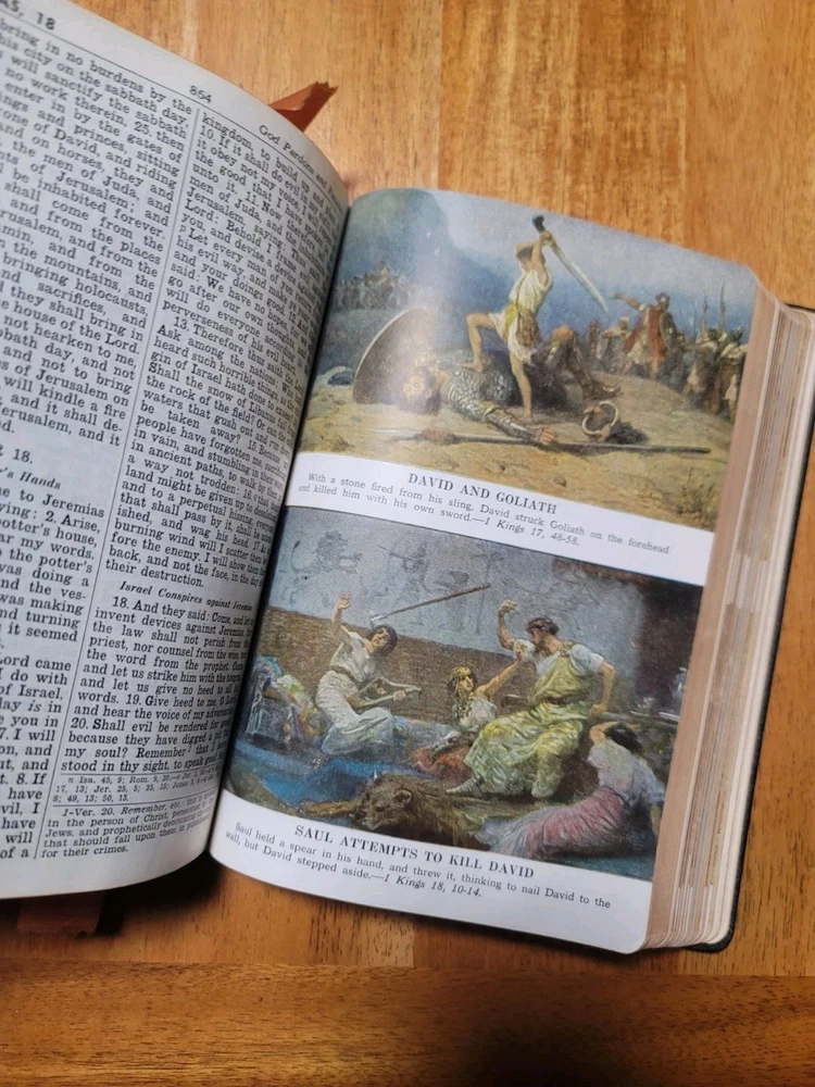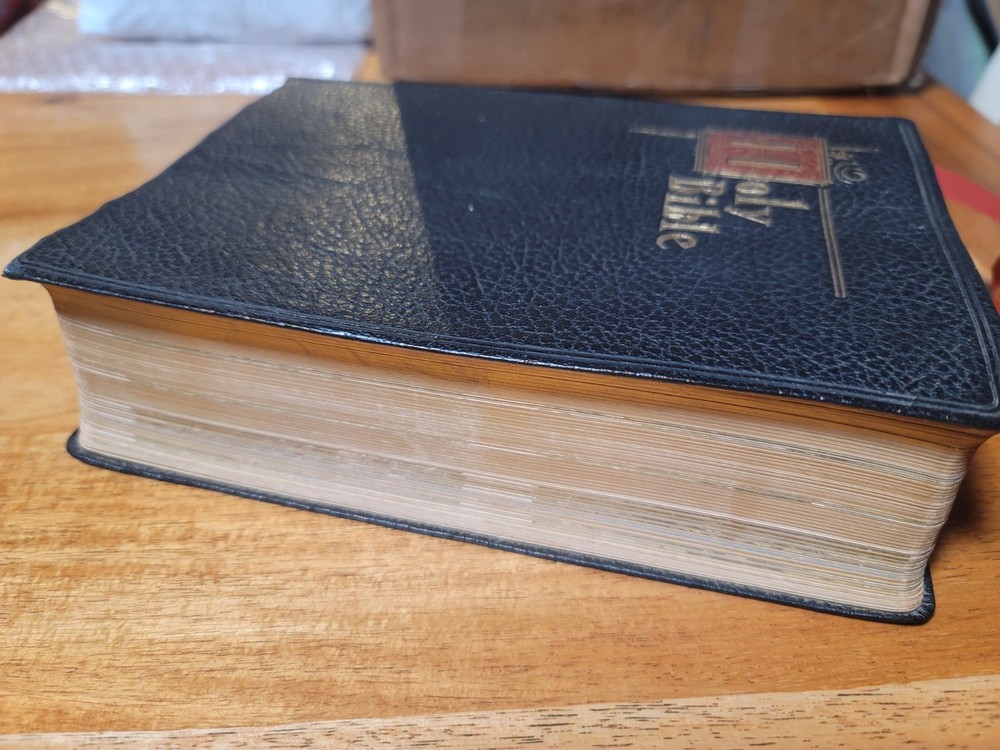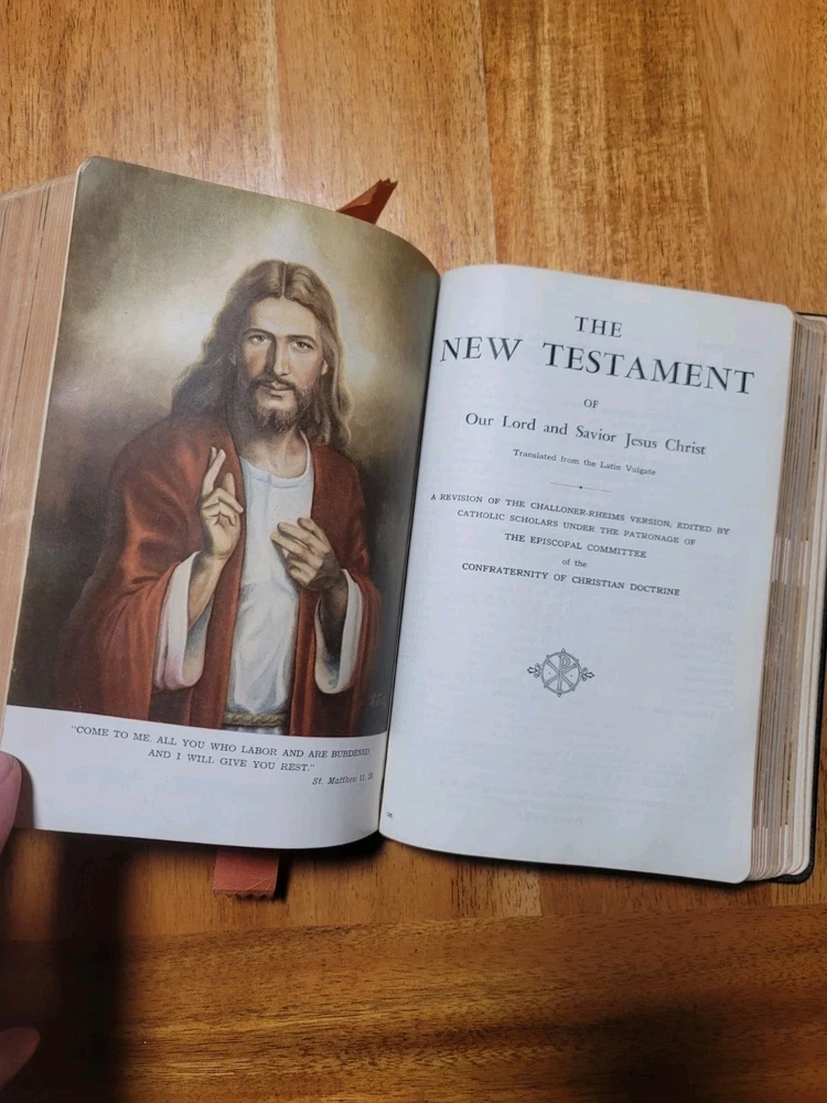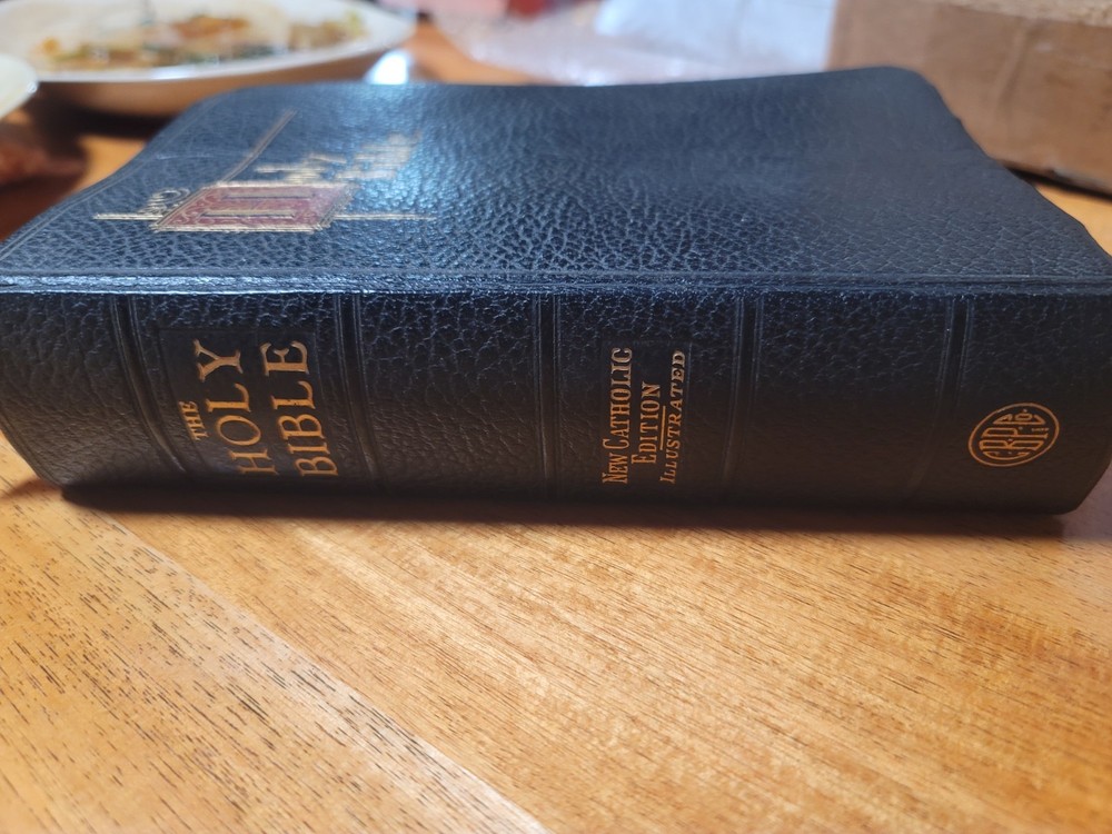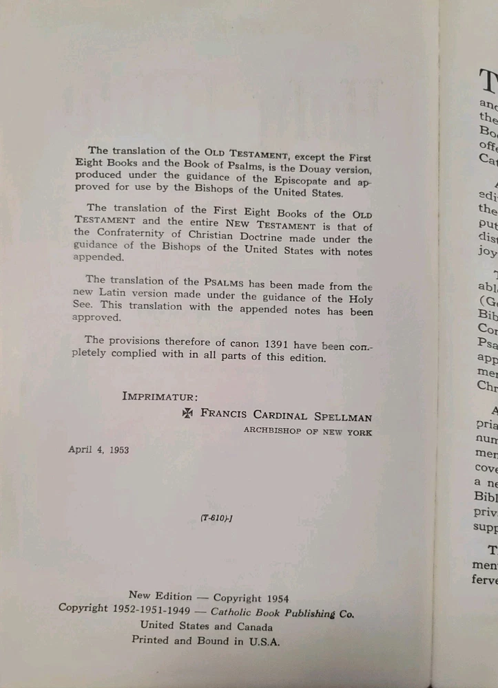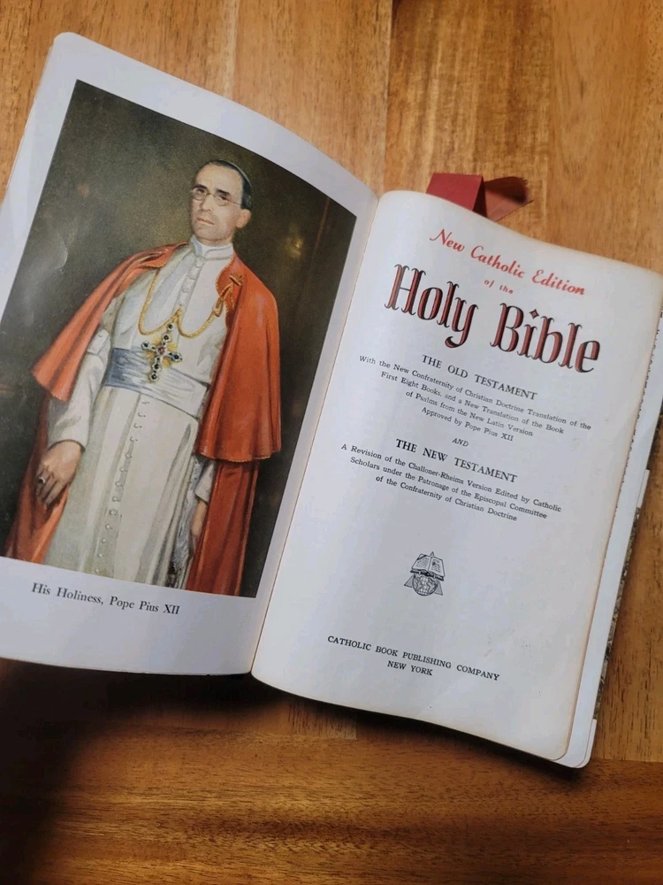 This beautiful vintage Holy Bible from 1954 is a treasure for any collector or admirer of religious literature. The New Catholic Edition, published by Catholic Book Publishing Company, features maps, family record pages, illustrations, and an index, making it a comprehensive resource for anyone interested in Christianity and Catholicism. The genuine leather soft cover and classic design add to its charm, making it a perfect display piece for any home or church. The Bible measures 8.3 inches in length, 6 inches in width, and 2 inches in height, making it a convenient size for reading and storage. The language is English, and it is written in the 1950s era in the United States. With its rare and unique features, this Bible is a must-have for anyone interested in religious history and literature. Non smoking household Box in living room