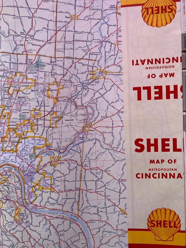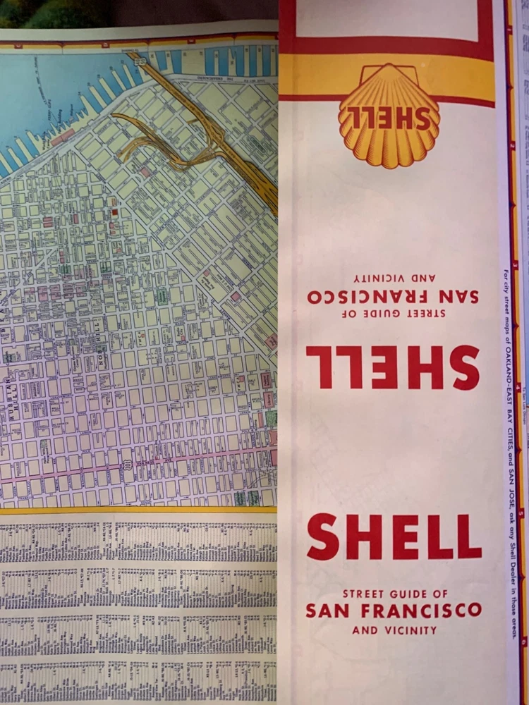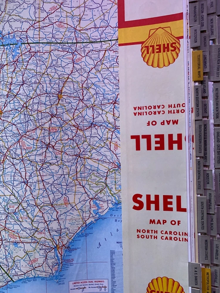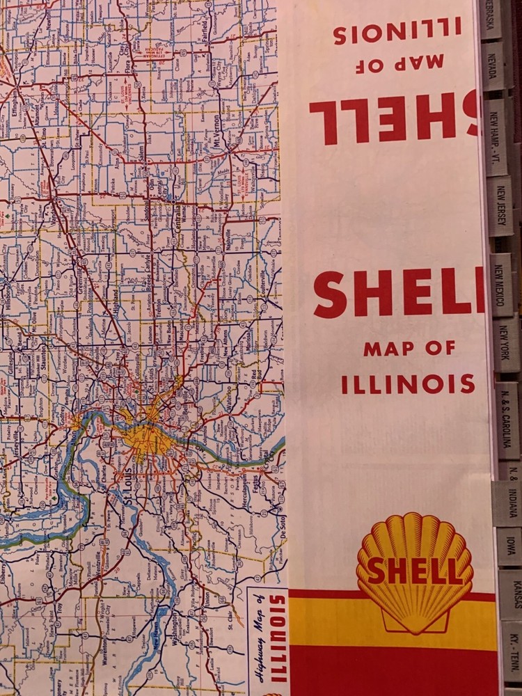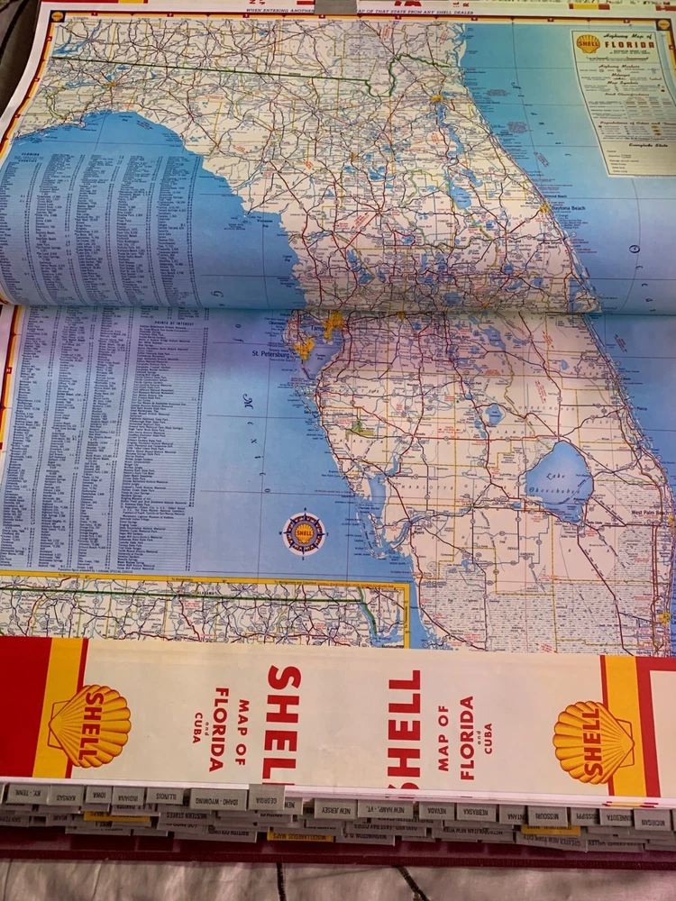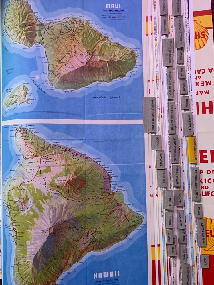 Fantastic Shell Leather Bound Book of Maps including all States, Cities, Canada, & Mexico. Includes some travel guide pages. Copyright 1958 , The leather book shows wear only at the top and bottom of the book spine.. It has a lovely deep burgundy color with Shell Oil Co. logo.on front cover. The size of the book is 2 1/4” x 13 1/2” x 18 1/2”.
