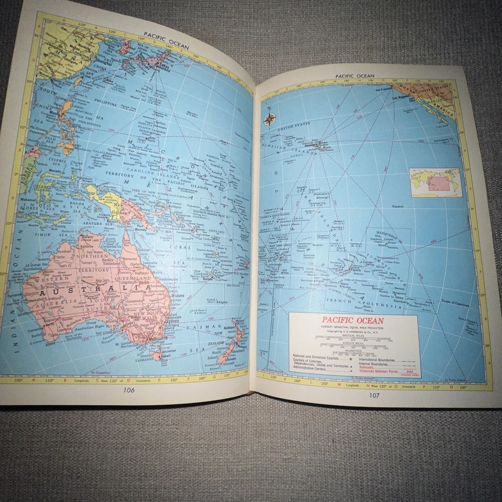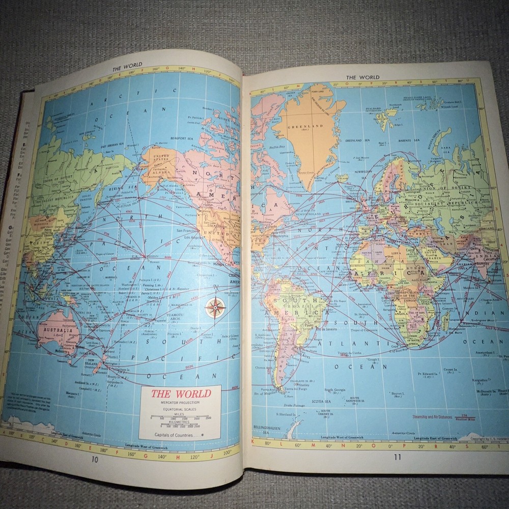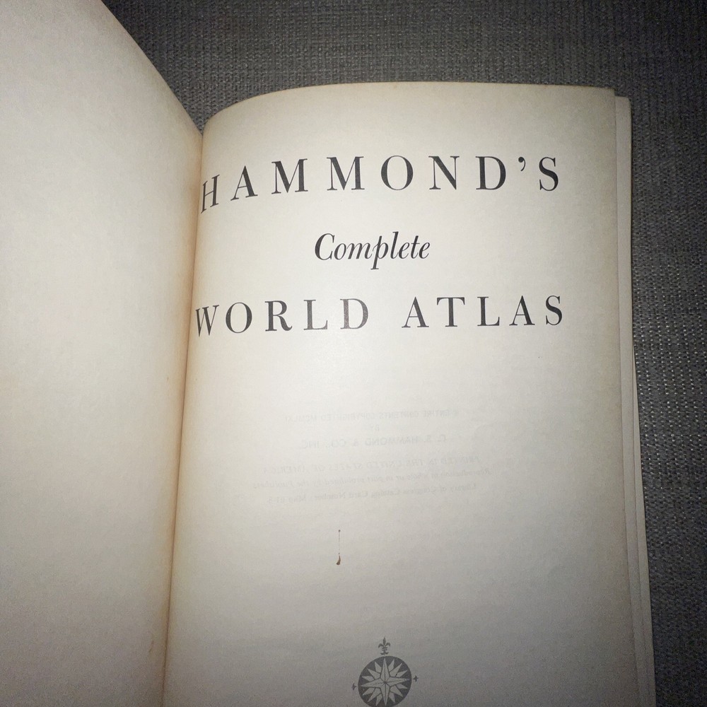 1961 Hammond's Complete World Atlas - Vintage Hardcover C.S. Hammond & Company. Slightly faded and a couple of scuffs around the edges