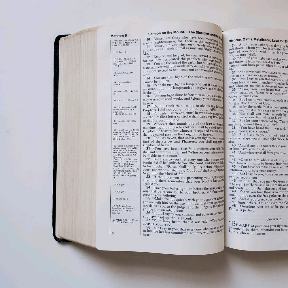 1973 Foundation Press New American Standard Bible Reference Genuine Leather. **There are a few underlining pen marks. I did not look through every page. I did not see many but I did see a few. Please see photos for details.** Thank you for shopping at The Real Housewife Department Store! Refunds given on returned merchandise only.