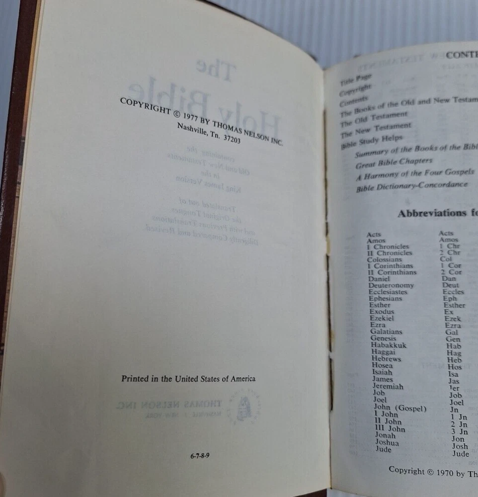 1977 Holy Bible King James Version Dictionary Concordance Thomas Nelson Leather This item is considered to be in good used condition or better. 2ndChapter Treasures does not professionally grade items, so please see the images of the actual item above for a better idea of the condition. All Pictures Provided Are Considered To Be A Critical Part Of This Item Description. Please Always Take The Time To View, Expand And Inspect Every Photo For Condition Quality And Judge For Yourself and send a message with any questions. Fast Shipping Buy with confidence. eBay member since 2002 (20+ years) with great feedback. Message me with any questions. Thanks for looking and for supporting my Veteran-owned small business. Your support means the world!