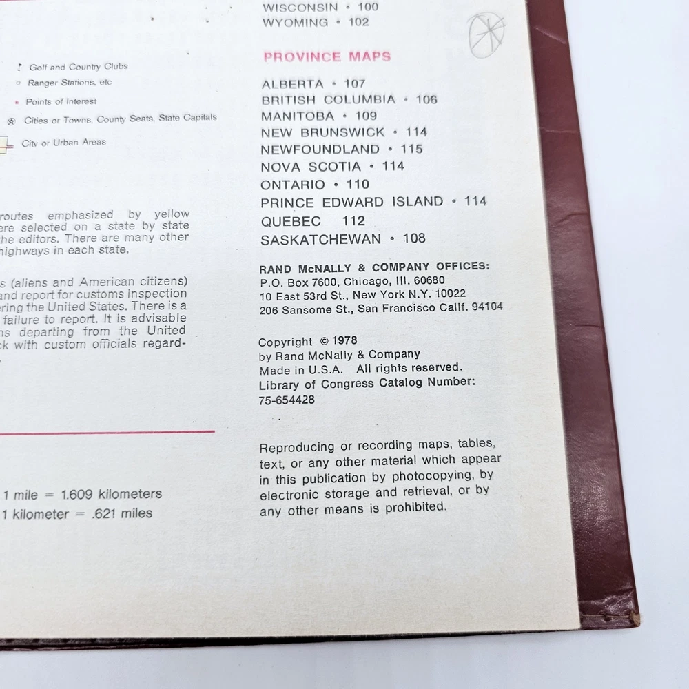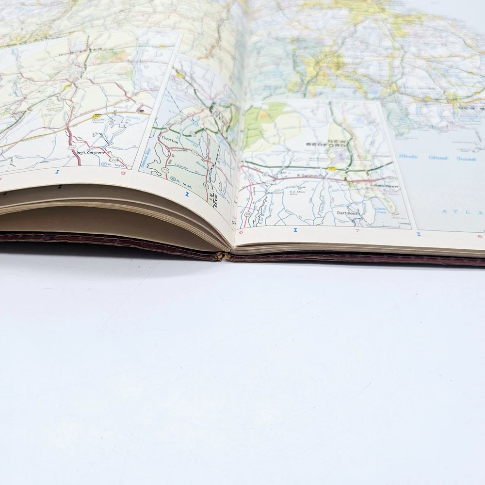 This is a vintage leather-bound Rand McNally road atlas published in 1978. It contains maps of the United States, Canada, and Mexico, making it a useful reference for geography buffs or collectors of antiquarian and collectible books. The atlas is original and comes with a dust jacket and illustrations. Some light wear seen in pictures! Besides that fantastic condition! Please see pictures and feel free to ask questions! Thank you for shopping at Anomalous Treasures! We hope that you've enjoyed looking at our store! Please note that we offer next day and free shipping! If you have any questions about your purchase before or after your purchase please do so! We will reply same day except Sundays! Thanks again!
