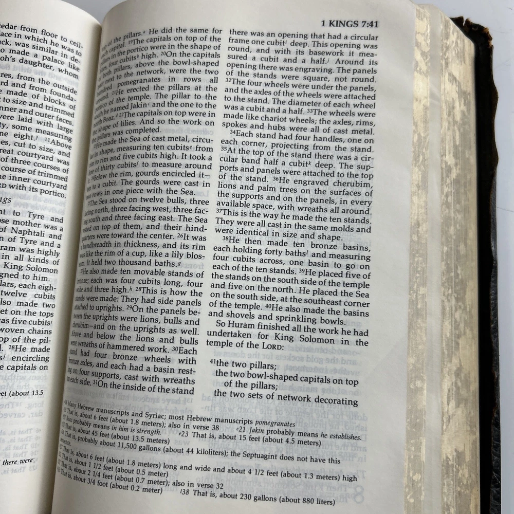 This beautiful leather-bound Holy Bible from Zondervan Bibles is a must-have for any collector or religious enthusiast. With single column black maps and a vintage cowhide cover, this 1978 NIV edition is the perfect addition to your library. The Bible spans 1635 pages and measures 9.25 inches in length, 6.25 inches in width, and 1.5 inches in height, with a weight of 2 pounds and 3 ounces. The intended audience for this Bible is adults, and it is personalized with a vintage cowhide cover and black maps. The Bible is in English and was published in 1978, making it a valuable vintage item. It is also a great resource for those interested in religious and spiritual genres.