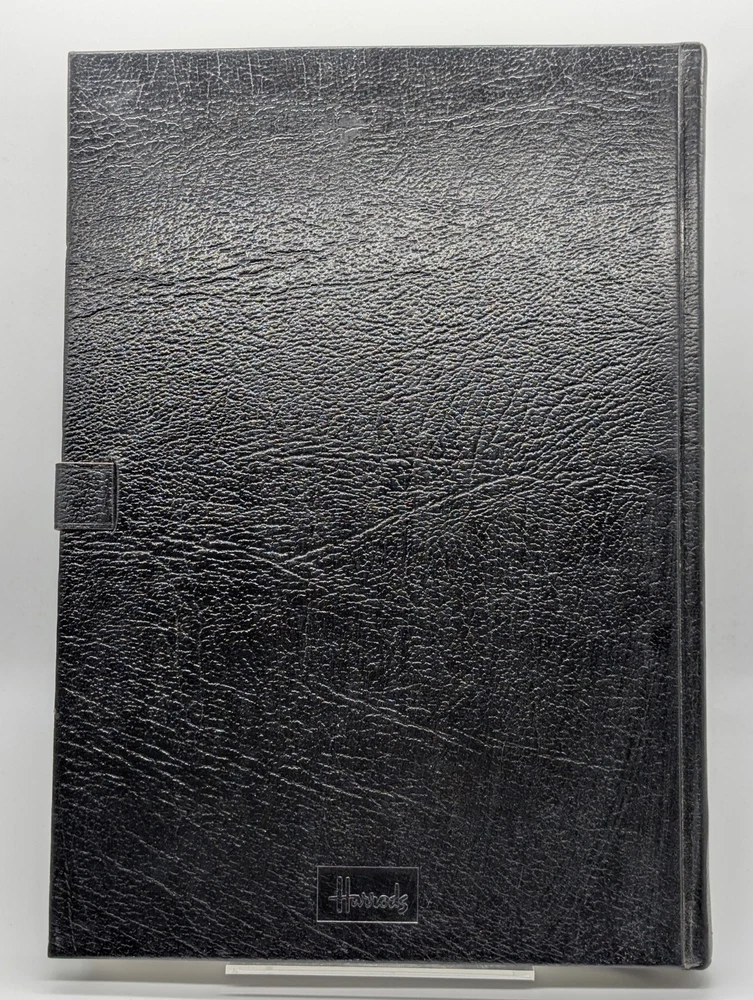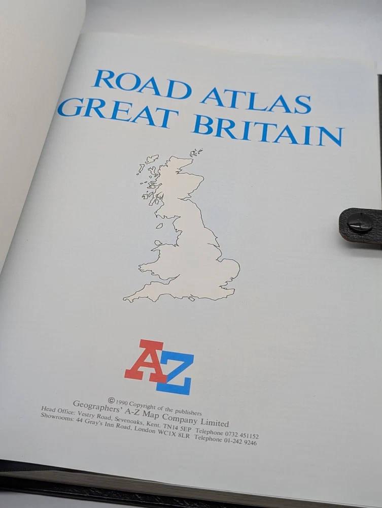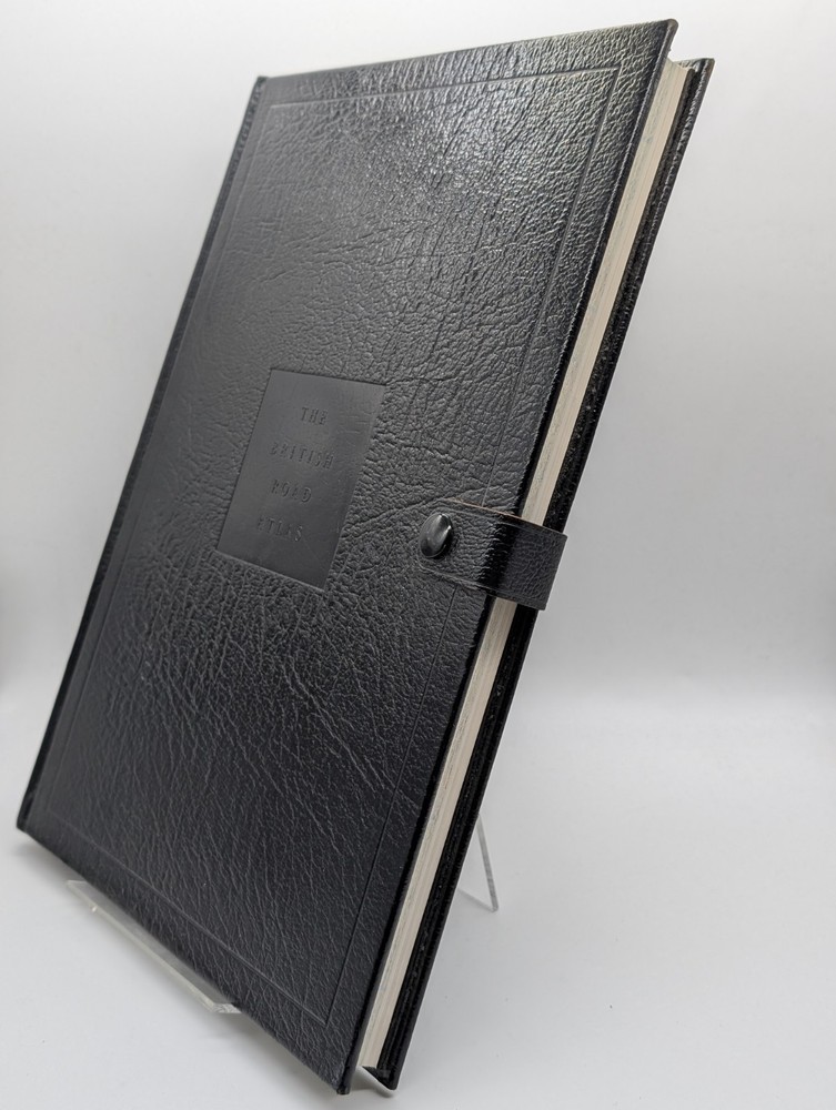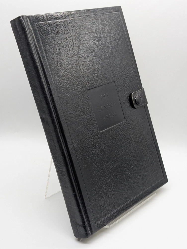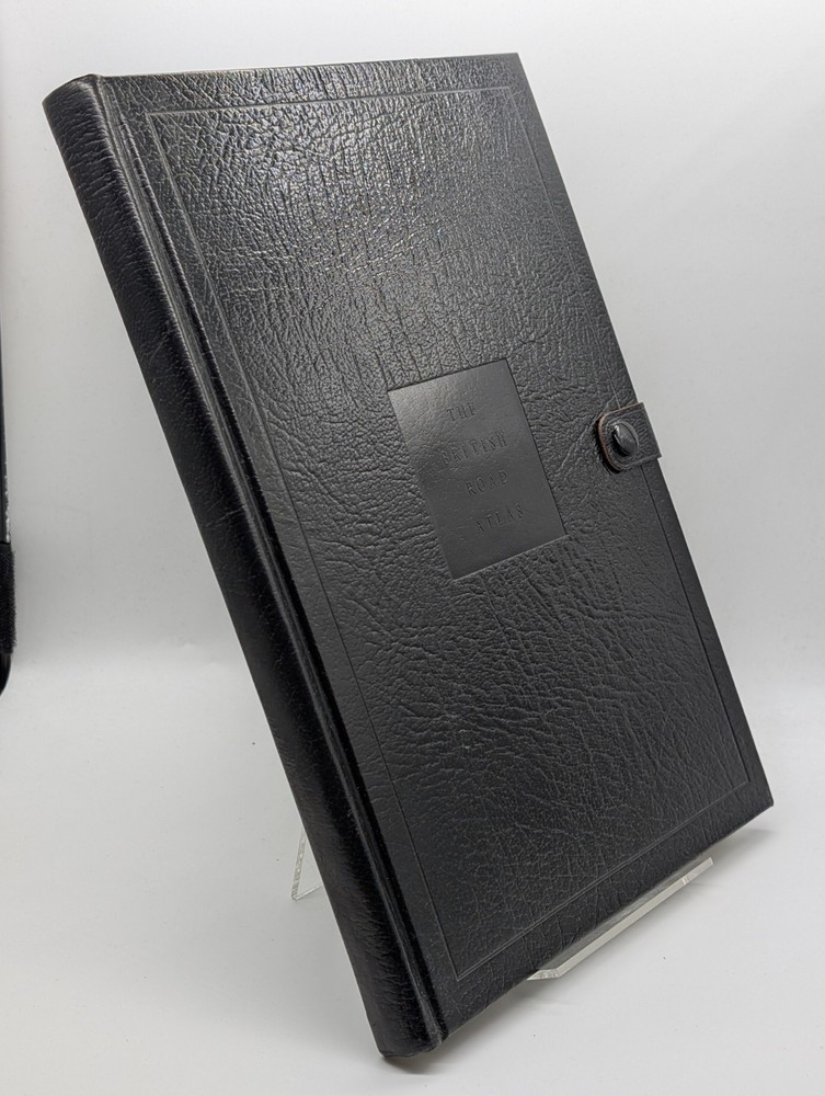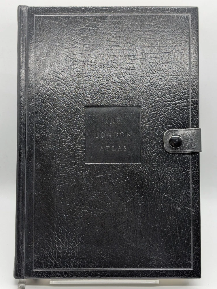 A rare pair of leather bound Atlas's from 1990 - these are Harrods branded as stamped on the rear of each, and have popper closures. Both in excellent condition as pictured. The Great Britain atlas is approximately 305 x 220mm and the London atlas approximately 255 x 175mm