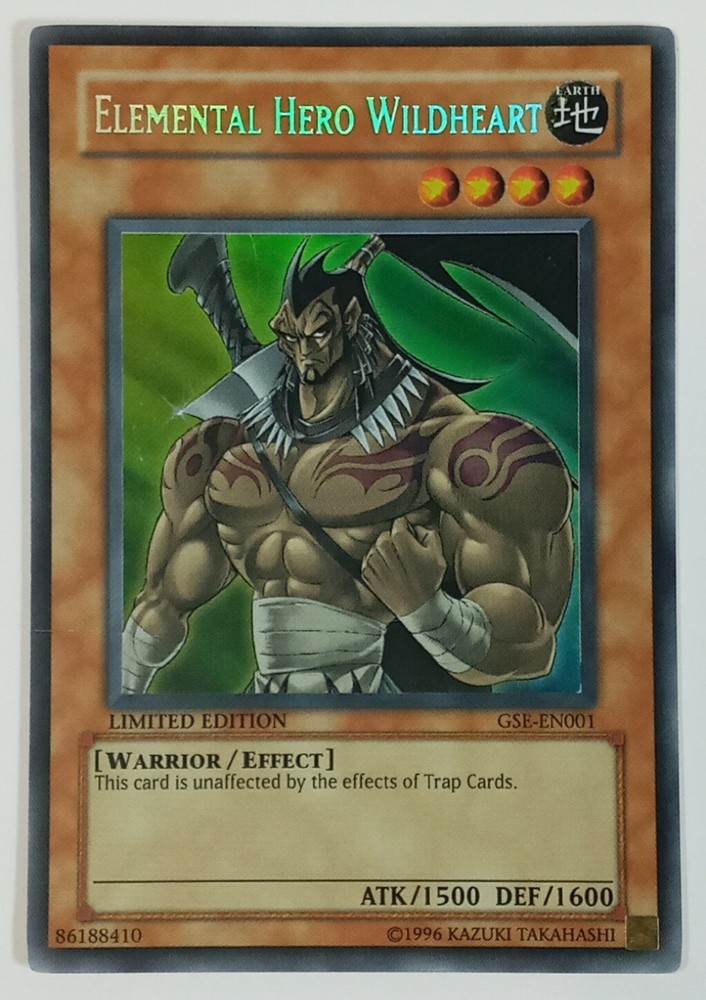 This limited edition Yu-Gi-Oh! card features the iconic Elemental Hero Wildheart in stunning holo format. Manufactured by Konami in 1996, this card is a must-have for any fan of the Yu-Gi-Oh! TCG game. The card is made of high-quality card stock and has a near mint condition, making it a valuable addition to any collection. The card number is GSE-EN001 and it is part of the Yugi set. The card is in English language and has a warrior creature/monster type. It is an autographed card with no signature for collectors who value anonymity. The card features the Earth attribute and has a normal card type.