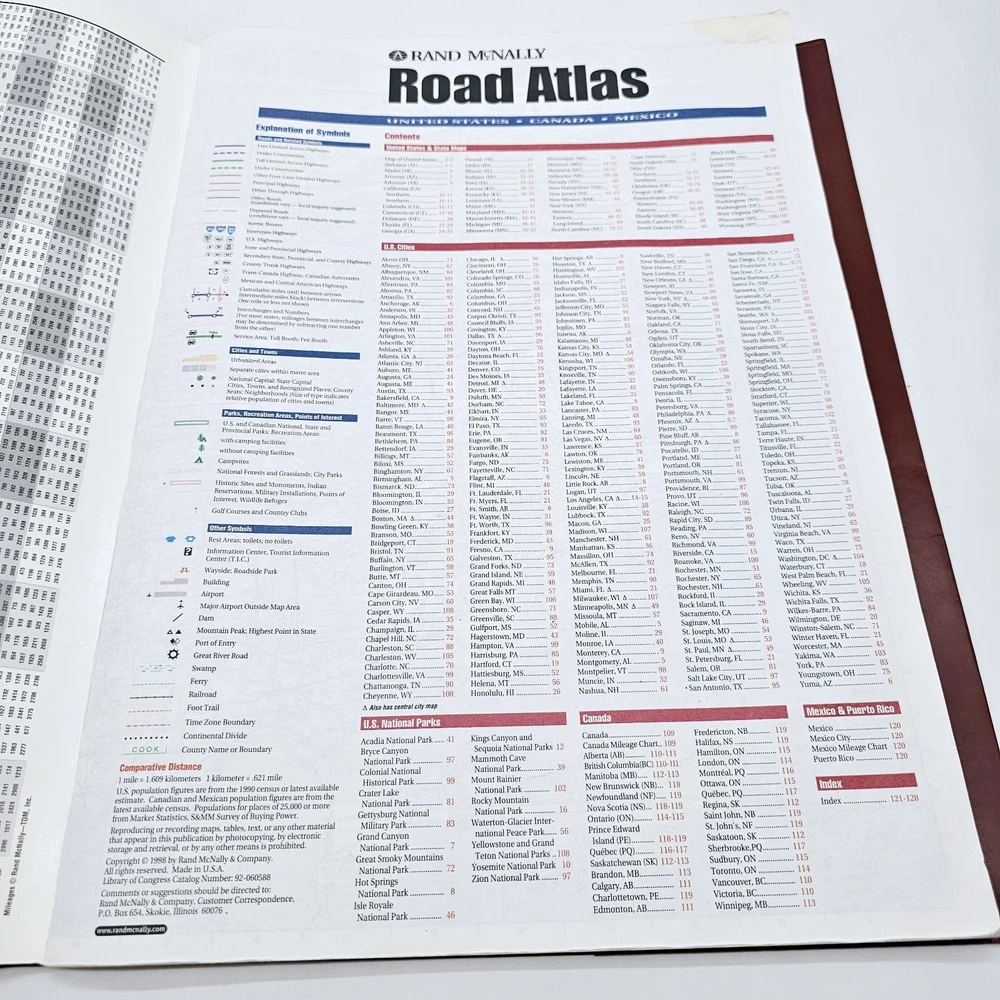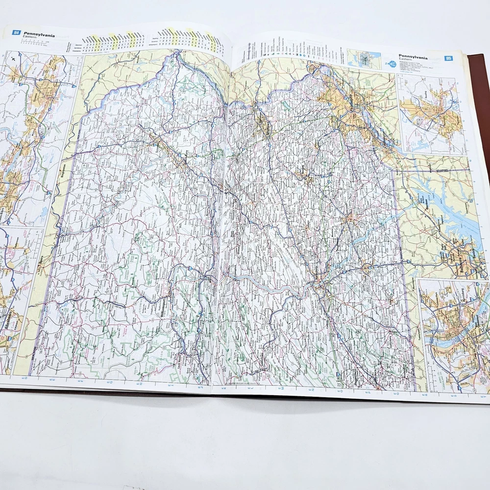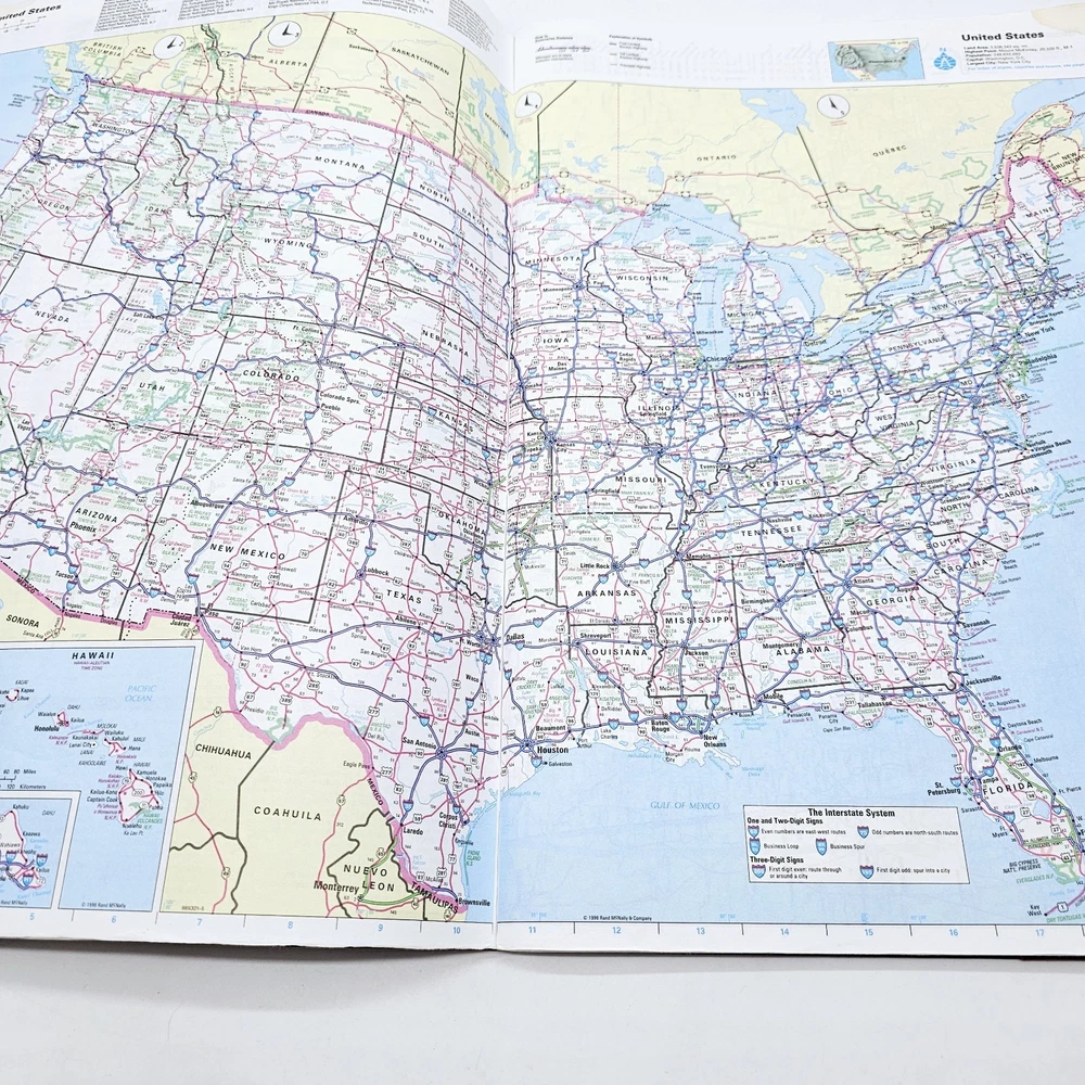 This is a vintage leather-bound Rand McNally road atlas published in 1998. It contains maps of the United States, Canada, and Mexico, making it a useful reference for geography buffs or collectors of antiquarian and collectible books. The atlas is original and comes with a dust jacket and illustrations. Some light wear seen in pictures! Besides that fantastic condition! Please see pictures and feel free to ask questions! Thank you for shopping at Anomalous Treasures! We hope that you've enjoyed looking at our store! Please note that we offer next day and free shipping! If you have any questions about your purchase before or after your purchase please do so! We will reply same day except Sundays! Thanks again!