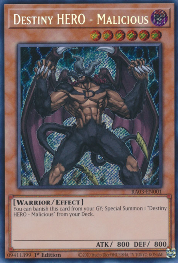 1X NM Secret Rare 1st Ed Destiny HERO Malicious RA03-EN001