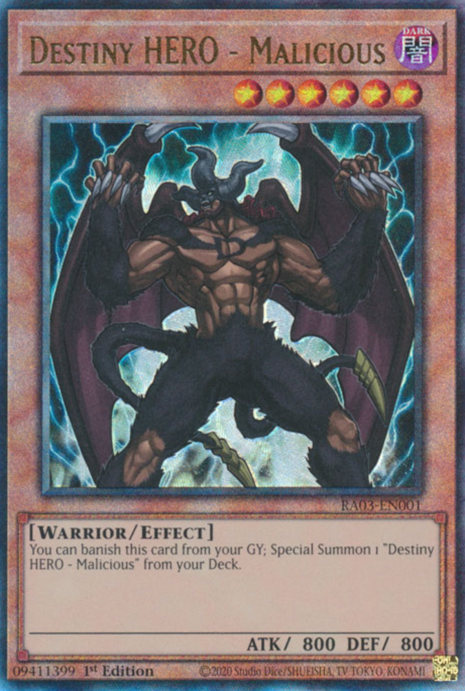 1X NM Destiny HERO Malicious Ultimate Rare 1st Ed RA03-EN001