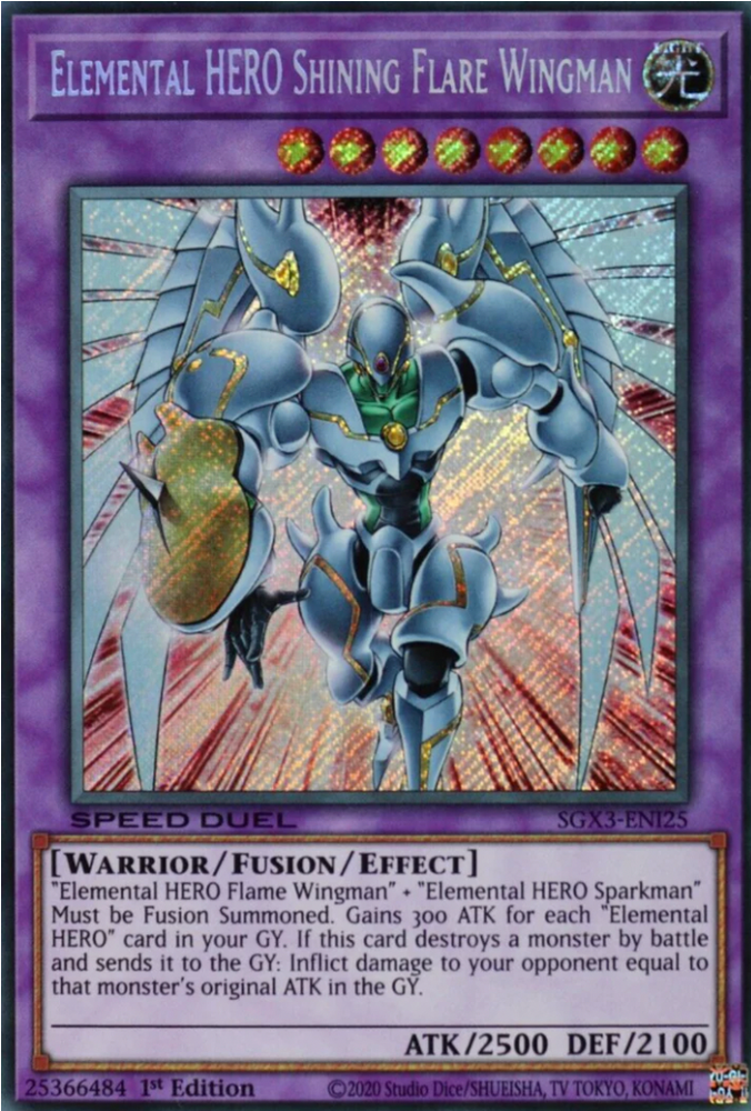 This Secret Rare Shining Flare Wingman is a must-have for any HERO deck enthusiast! The card arrived in perfect condition, just as described, with sharp artwork and flawless foiling. Shipping took a bit longer due to customs, but the seller kept me updated, and the wait was worth it. Highly recommended for collectors and duelists alike—great value for a 1st Edition gem!