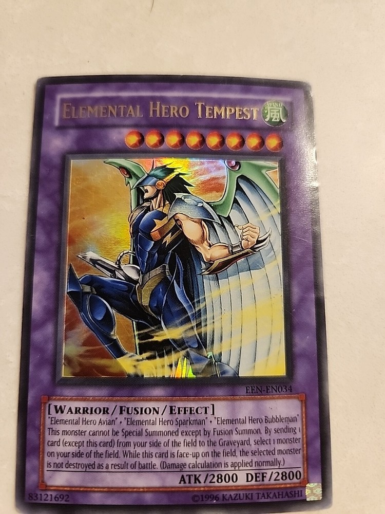 1x Elemental Hero Tempest - EEN-EN034 - Ultra Rare - Heavily Played . Condition is Ungraded. Shipped with eBay Standard Envelope for Eligible Items up to $20.