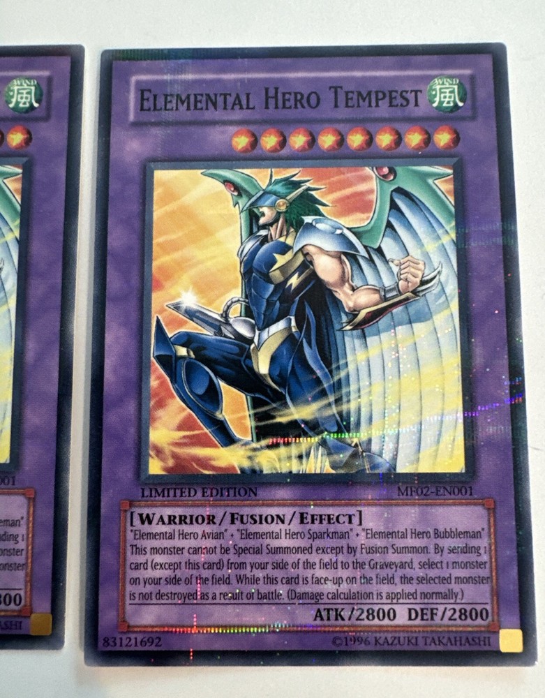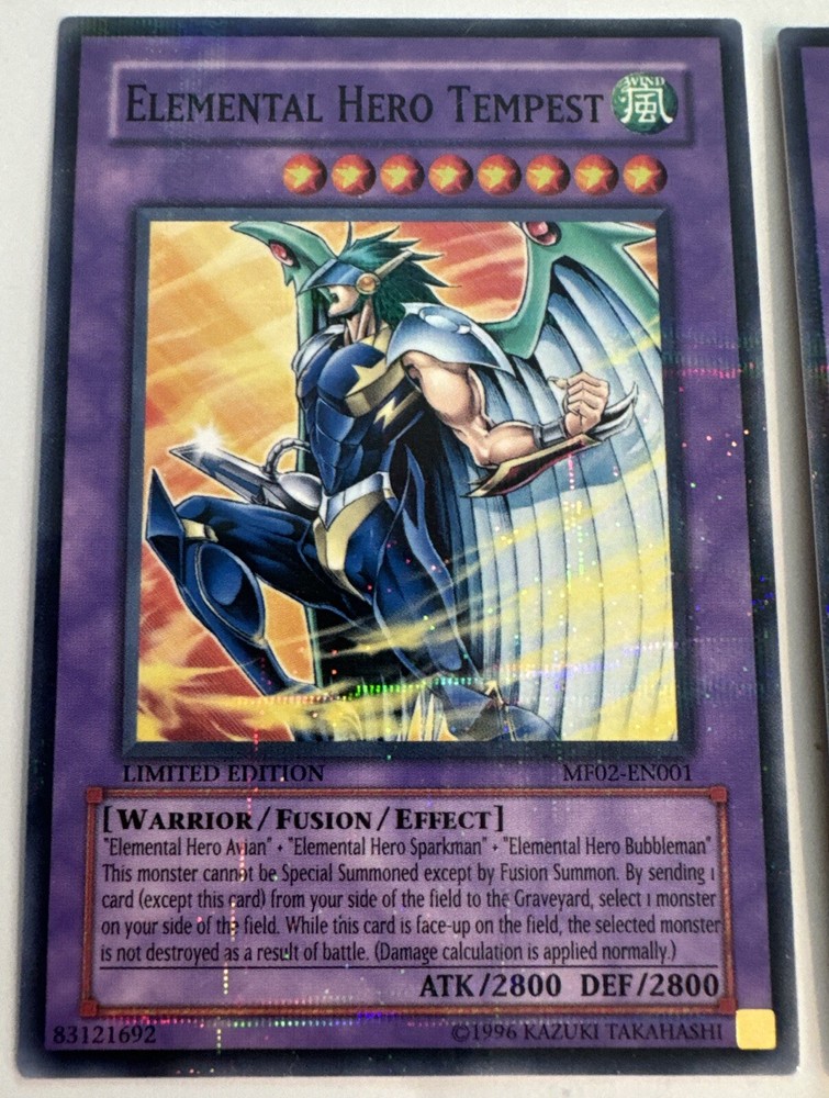 Elemental Hero Tempest NM MF02-EN001 Parallel Rare Promo YuGiOh. Near mint. You receive ONE card per purchase. ***I will consider REASONABLE offers. If you offer 50% off or more I will not consider that a reasonable offer, and will be less likely to consider a lower price. Please do not ask me for a best price and counter with something way lower. I do combine shipping but do not ask for a shipping discount on a single item. We calculate shipping based on weight, size, and location.