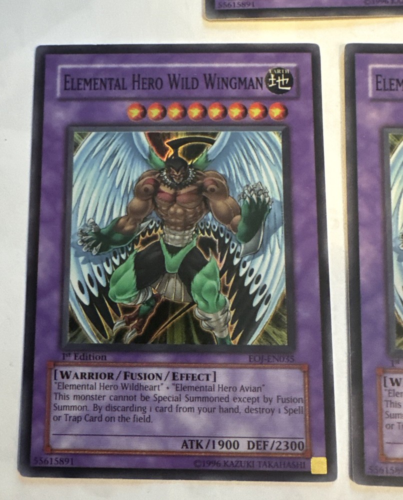 Elemental Hero Wild Wingman EOJ-EN035 Super Rare 1st Edition Near Mint Yugioh. You receive ONE card per purchase ***I will consider REASONABLE offers. If you offer 50% off or more I will not consider that a reasonable offer, and will be less likely to consider a lower price. Please do not ask me for a best price and counter with something way lower. I do combine shipping but do not ask for a shipping discount on a single item. We calculate shipping based on weight, size, and location.