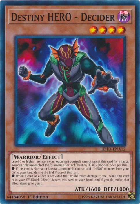 Condition: LP Rarity: Common 1st Edition Destiny HERO - Decider - LEHD-ENA12 - Common - 1st Edition IMAGE IS A STOCK IMAGE. PLEASE SEE CONDITION INFO &GRADING DESCRIPTION Domestic Shipping First Class FREE!!! + $0.00 for each additional auction Priority $12.00+ $0.00 for each additional auction International Shipping First Class $7.00+ $0.00 for each additional auction Card Grading Mint/Near Mint (M/NM): Cards in Near Mint condition show minimal to no wear. Excellent (EX): Cards in Excellent condition may have minor wear, or even just slight scuffs or scratches. There are no major defects. Light Played (LP): Cards in Lightly Played condition show moderate wear. Cards in Lightly Played condition may have moderate border wear, mild corner wear, water damage, scratching or scuffing, creases or whitening, minor dirt buildup, or any combination of mild examples of these defects. Played (P): Cards in Played condition show a severe amount of wear. Played condition can include cards that have creasing, border wear. Heavy Play (HP): Cards in Heavily Played condition can exhibit a bend, or crease that may make the card illegal for tournament play, even in a sleeve. Cards in Damaged condition may have extreme border wear, have been written on or major inking extreme corner wear, heavy scratching or scuffing, folds, creases or tears.