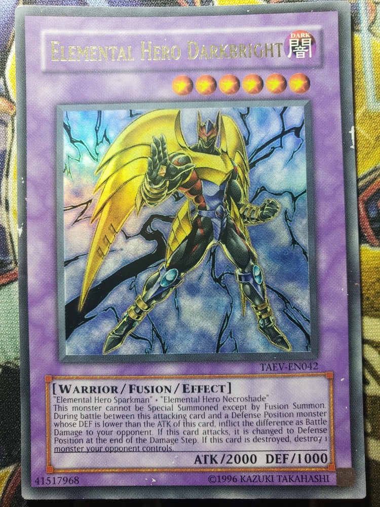 1x (MP) - Elemental HERO Darkbright - TAEV-EN042 - Ultra Rare - Unlimited YuGiOh. Condition is Used. Shipped with eBay Standard Envelope for Trading Cards, Stamps, Postcards & Coins up to $20.