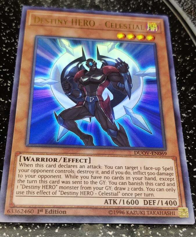 1x Yu-Gi-Oh! Destiny HERO - Celestial - DUOV-EN069 - Ultra Rare - 1st Edition - NM 1 Copy 1st Edition Ultra Rare Mint/Near Mint Condition L anguage: English Shipping from: Canada Shipping to: Canada, USA All card(s) are shipped in a hard plastic top-loader sleeve, securely taped. All item(s) in the listing are 100% Konami TCG authentic and are ready for tournament use. Photo(s) are of the actual item(s). Shipped from a smoke-free and pet-free home. Seller does not provide combine shipping discounts. Returns NOT accepted. All sales are final. Payment method(s) accepted: PayPal Seller reserves the right to cancel, modify or remove the listing at any time. IMPORTANT: ALL ORDERS THAT TOTAL TO/AND OR ABOVE $50.00 (INCLUDING REGULAR SHIPPING COSTS ($1.93 TO CANADA/$3.93 TO USA)), MUST INCLUDE AN ADDITIONAL $20.00 CHARGE TO INCLUDE TRACKING+ DELIVERY CONFIRMATION. THIS IS A MANDATORY ADD-ON TO BETTER PROTECT BOTH THE BUYER AND THE SELLER. IF YOU DO NOT WISH TO PAY THE ADDITIONAL CHARGES, THE ORDER WILL BE CANCELED AND YOU WILL RECEIVE A REFUND IN-FULL. THANK YOU FOR YOUR UNDERSTANDING!