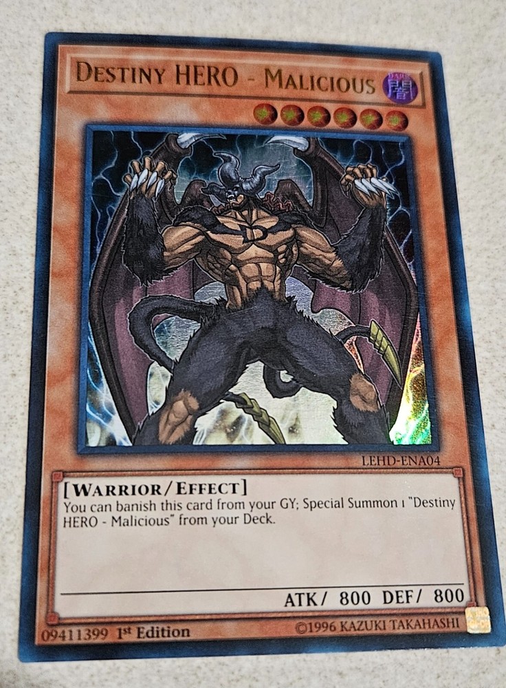 1x Yu-Gi-Oh! Destiny HERO - Malicious - LEHD-ENA04 - Ultra Rare - 1st Edition - NM 1 Copy 1st Edition Mint/Near Mint Condition Language: English Shipping from: Canada Shipping to: Canada, USA All card(s) are shipped in a hard plastic top-loader sleeve, securely taped. All item(s) in the listing are 100% Konami TCG authentic and are ready for tournament use. Photo(s) are of the actual item(s). Shipped from a smoke-free and pet-free home. Seller does not provide combine shipping discounts. Returns NOT accepted. All sales are final. Payment method(s) accepted: PayPal Seller reserves the right to cancel, modify or remove the listing at any time. IMPORTANT: ALL ORDERS THAT TOTAL TO/AND OR ABOVE $50.00 (INCLUDING REGULAR SHIPPING COSTS ($1.98 TO CANADA/$3.98 TO USA)), MUST INCLUDE AN ADDITIONAL $20.00 CHARGE TO INCLUDE TRACKING+ DELIVERY CONFIRMATION. THIS IS A MANDATORY ADD-ON TO BETTER PROTECT BOTH THE BUYER AND THE SELLER. IF YOU DO NOT WISH TO PAY THE ADDITIONAL CHARGES, THE ORDER WILL BE CANCELED AND YOU WILL RECEIVE A REFUND IN-FULL. THANK YOU FOR YOUR UNDERSTANDING!