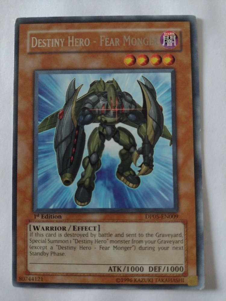1x Yu-Gi-Oh Destiny Hero - Fear Monger DP05-EN009 - 1st Edition - light play. Condition is light play. I will send the card in a card sleeve and pack it well to avoid damage. Please, do look at the ot...