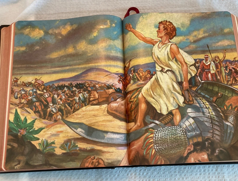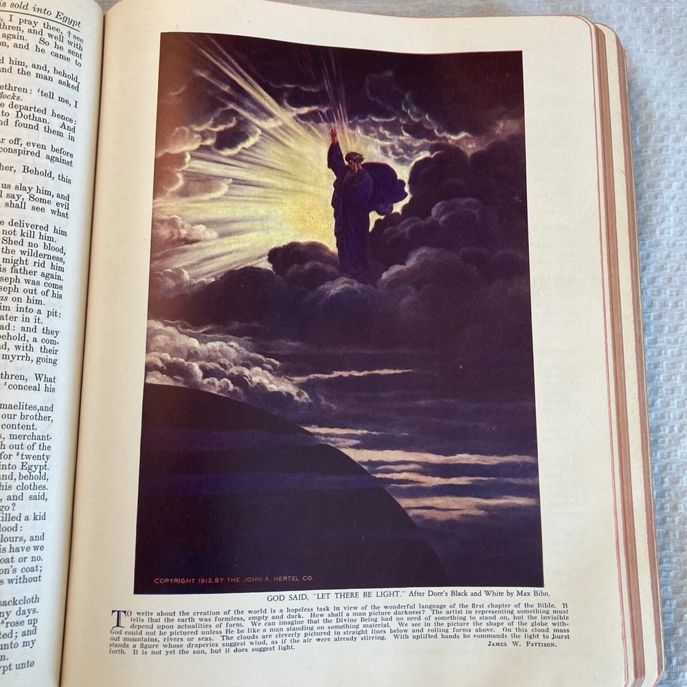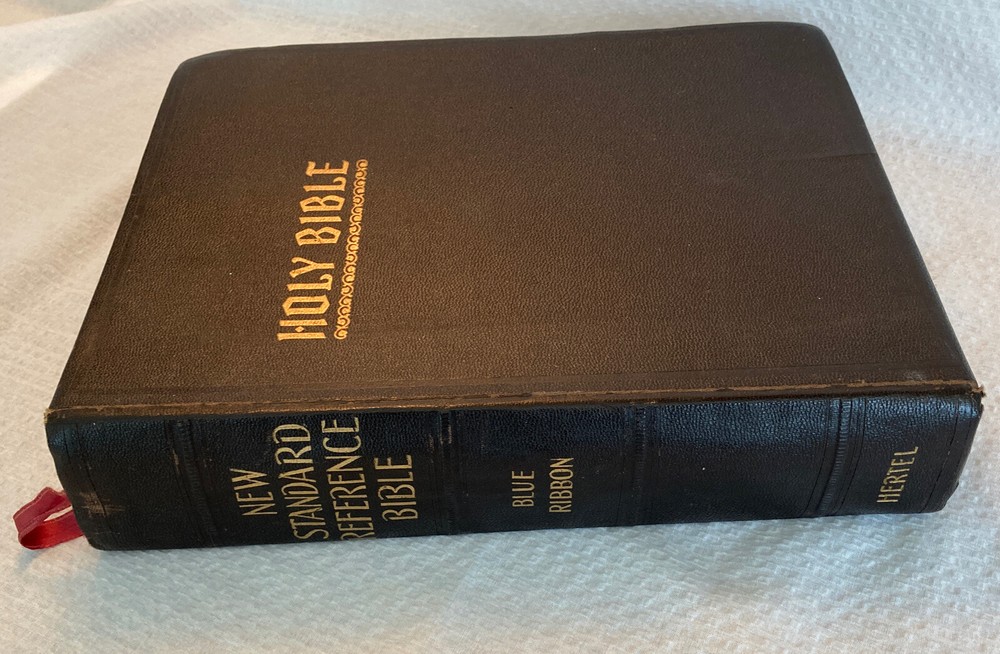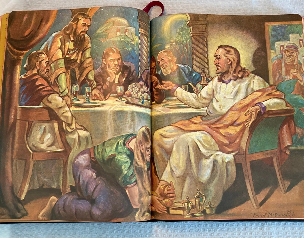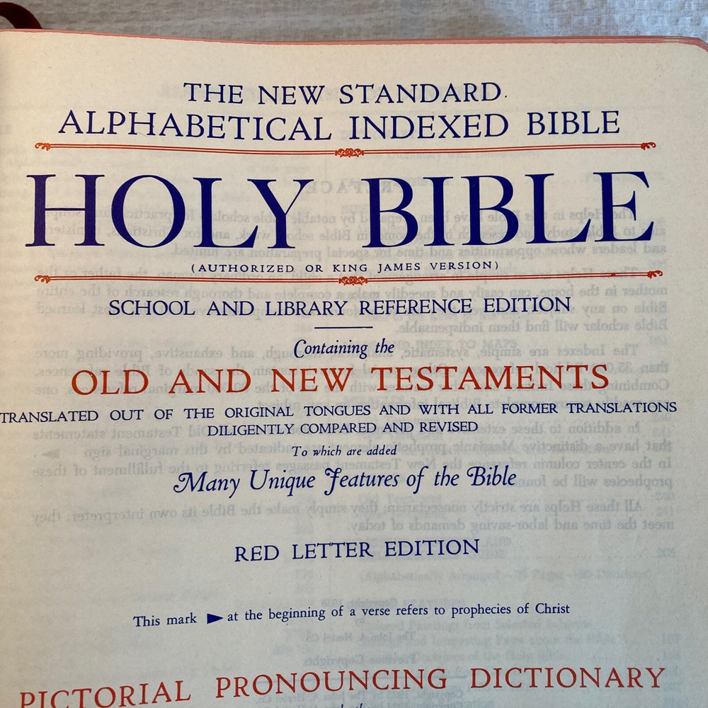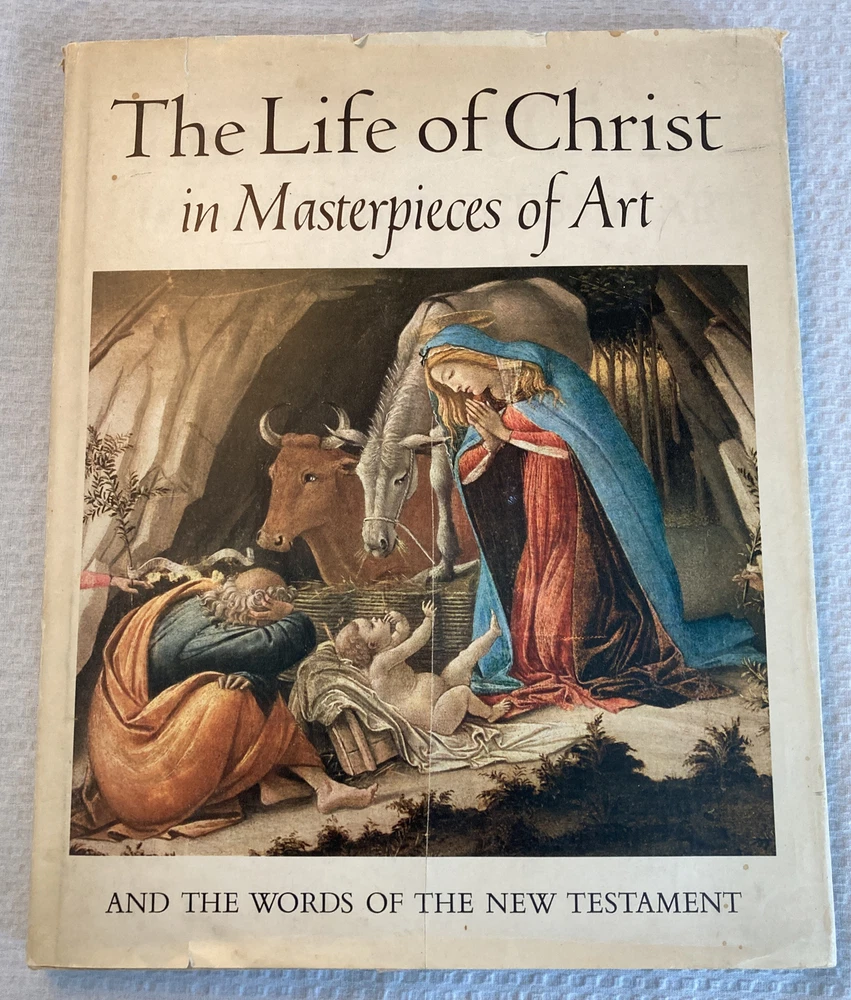 This Listing is For a Set of 2 Christian Books. The 1st is the Holy Bible 1955 Hertel New Standard Reference Bible Blue Ribbon Red Letter Edition. This is a Very Large Book of 954 Pages. It Was Translated Out of the Original Tongues and With All Former Translations Diligently Compared and Revised. It Has an Alphabetical and Cyclopedic Index, A Comprehensive Bible Dictionary and Beautifullu Illustrated Colored Pictures. The Front Presentation Page is Gone But There Are Other Pages for Personal Family History. Also Included is, "The Life of Christ in Masterpieces of Art". It Has 44 Plates in Full Color Photogravure and the Words of the New Testament. The Art Could be Lifted From the Book and Framed. There Are Some Gilted Photos. This Book is Approx. 13" Tall by 10" Wide. The Bible Measures Approx. 12" Tall by 9-1/2" Wide and 2-1/2" Deep. Two Quality Religious Books. Lovely! Please See My Condition Description and My Photos in the Enlarged Mode. Also Check Out My Store For Other Varied Items.