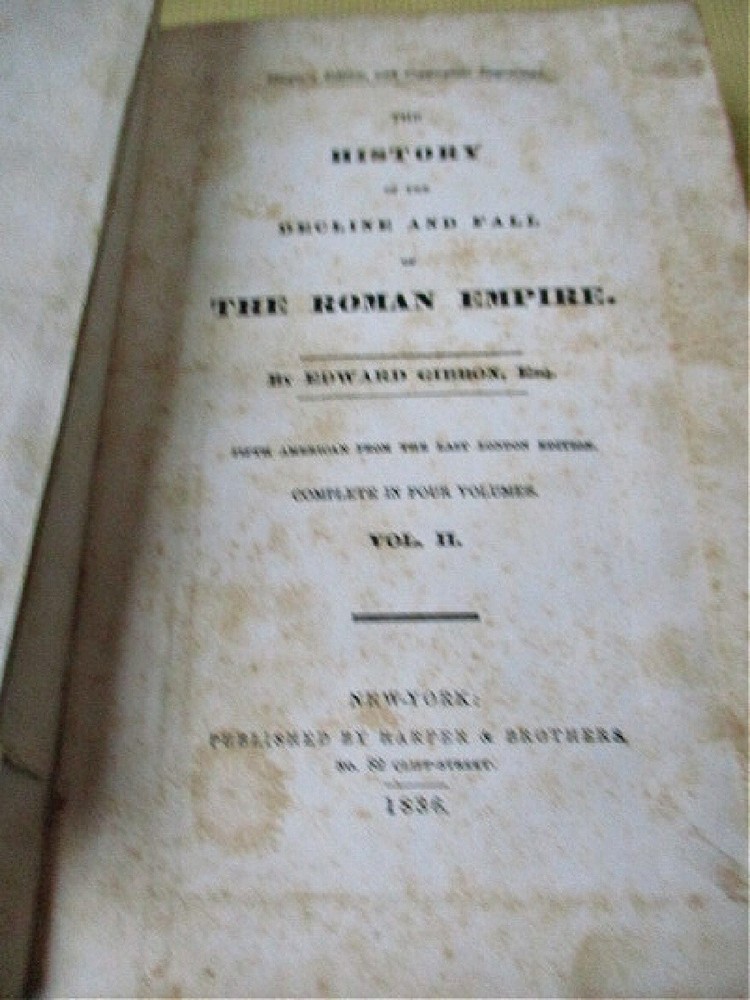 u323. Volumes 1 and 2 only. Pub. Harper & Bros., NY., 1836. Fifth American from last London Edition. Octavo, 472 pages, frontispiece portrait; 445 pages, folding map of western section of Roman Empire. Full calf covers. Strong, clean copies, lacking 3 of 4 spine labels. Moderate edge wear. Very Good- condition, both volumes. Do not hesitate to e-mail with any questions. As Always, Satisfaction Guaranteed! I expect to receive payment within 10 days, unless we have made other arrangements. Shipping will be USPS Media or First Class, depending on weight. If you prefer Priority mail, I will be glad to make the adjustment. I'm glad to combine multiple purchases in order to minimize shipping costs. I WILL SHIP INTERNATIONALLY, and I try to be as economical as possible with the shipping costs. RETURN POLICY: Satisfaction Guaranteed! Track Page Views With Auctiva's FREE Counter