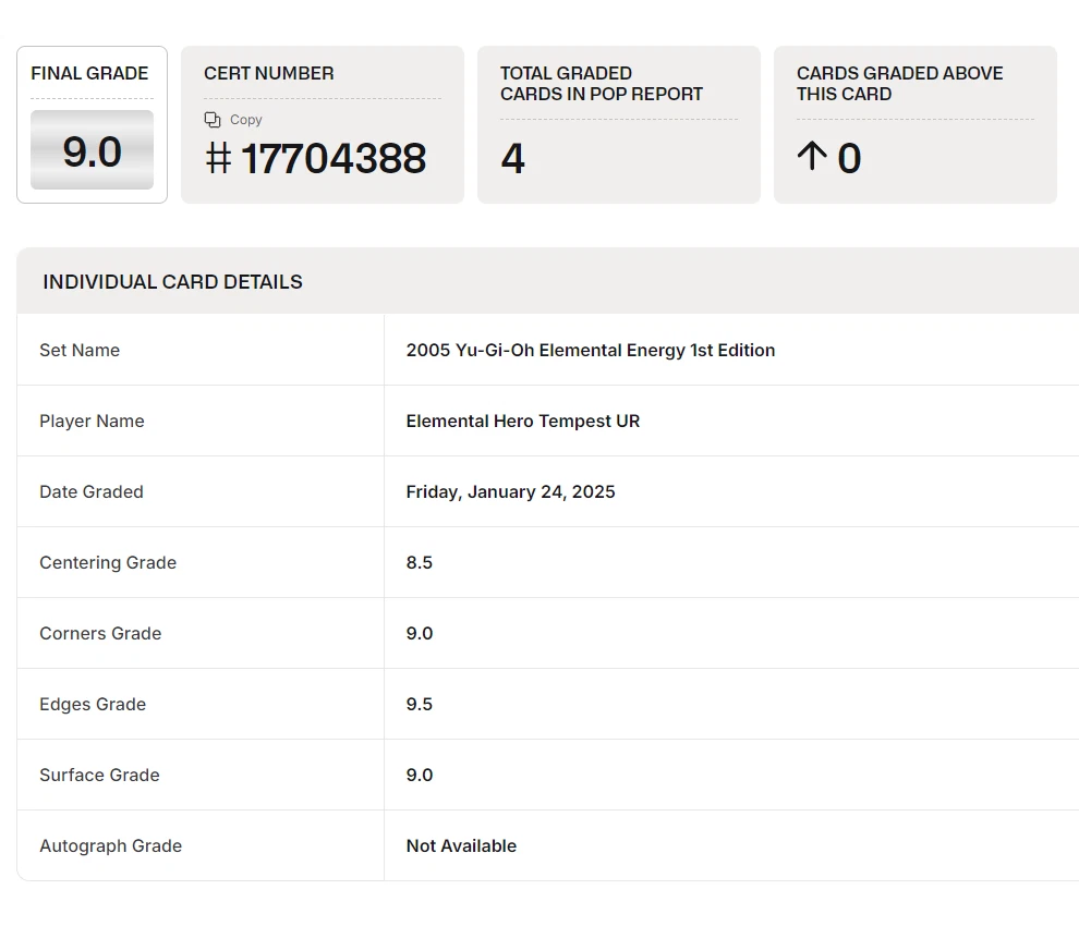(see photo). Originally opened in probably 2005-06 and kept in a sleeve and a binder since (only one owner). Decided to grade it since is the 20th anniversary and came back an 9 Mint. An already 20 years old timeless gem in Mint condition to add to your collection.