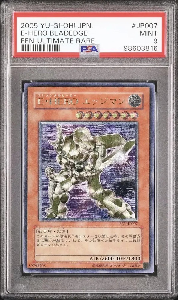 This Yu-Gi-Oh! E-HERO Bladedge card is a must-have for collectors—PSA 9 condition, stunning Ultimate Rare finish, and sharp Japanese printing. Shipping options are clear and reliable, with tracking included. Despite possible delays, the seller is professional and the card arrives safely. A fantastic addition to any deck or display!