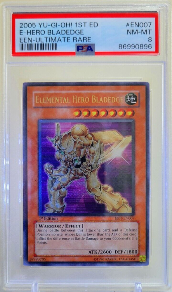 2005 YuGiOh EEN-EN007 1st Ed Ultimate Rare Elemental Hero Bladedge PSA 8 If you have any questions/concerns, feel free to reach out and we will respond as soon as possible. If you would like more pictures of this item, please contact me and specify which angles you'd like. If you purchase multiple items from us, you are welcome to contact me and we can discuss combined shipping.
