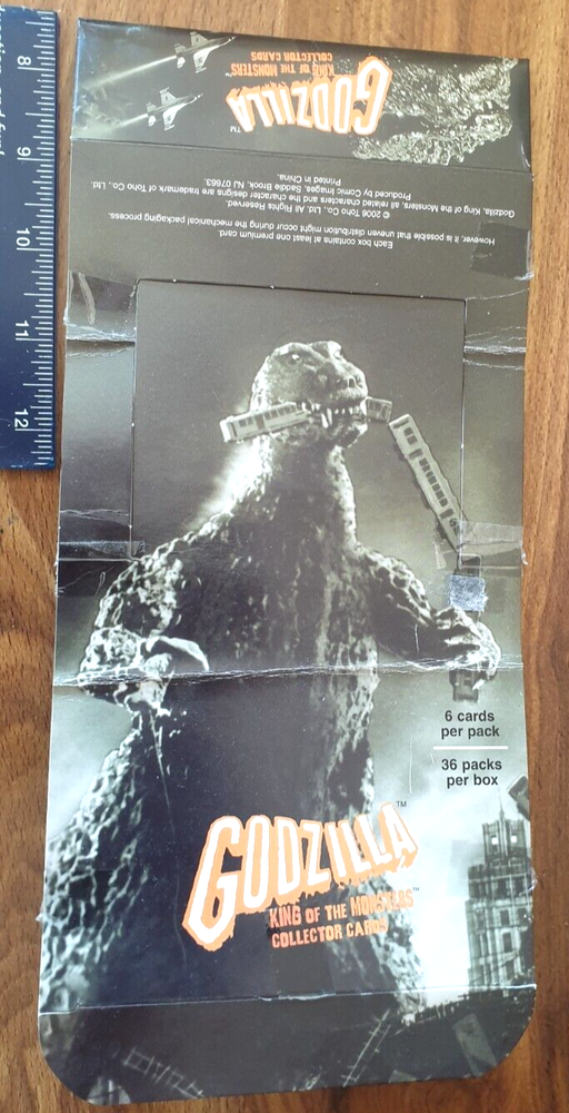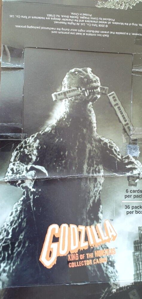 ## 2006 GODZILLA KING OF MONSTERS TRADING CARD EMPTY BOX THIS IS 1 SPECIAL OLD TIME TRADING CARD SMPTY BOX .. .. OK CONDITION. CHECK PICTURES , ASK QUESTIONS NOW ! WITH BAG AND BOARD Check out my other items ! TO SAVE ON SHIPPING GREAT ITEM FOR YOUR COLLECTION $ 4.75 SHIPPING . ( POSTAGE UP AGAIN !! ) ITEMS ARE ALWAYS SHIPPED SAFE AND SECURE ... need payment in 5 days thank you any questions ... please ask now Powered by eBay Turbo Lister The free listing tool. List your items fast and easy and manage your active items.