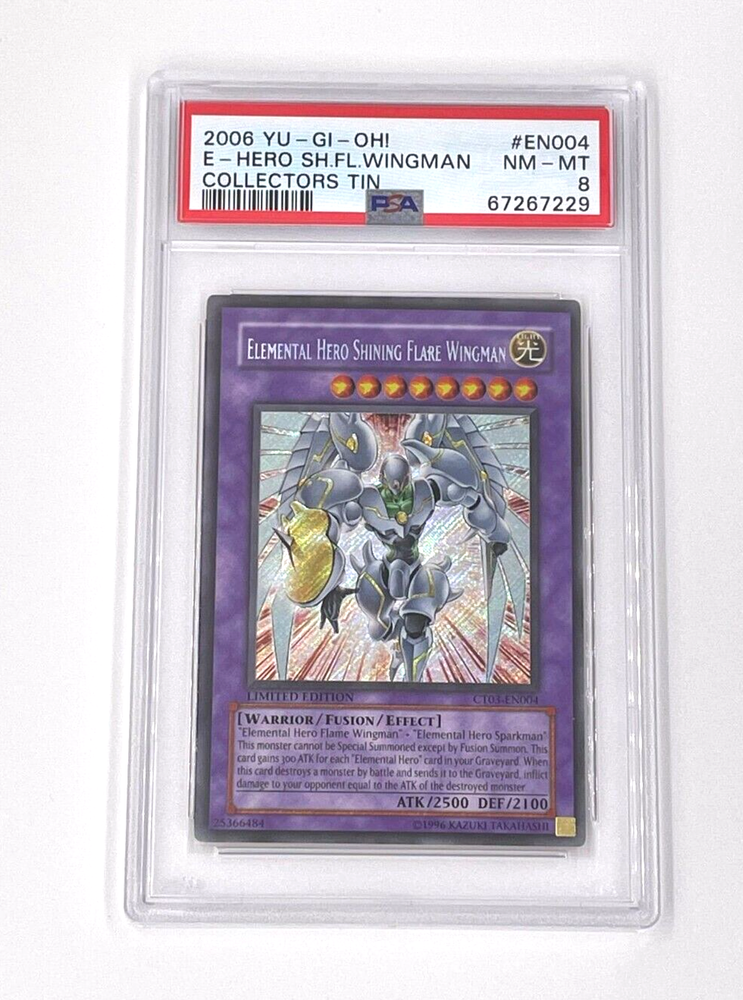 2006 YuGiOh Elemental Hero Shining Flare Wingman CT03-EN004 Collectors Tin PSA 8 Ships in 2 business days