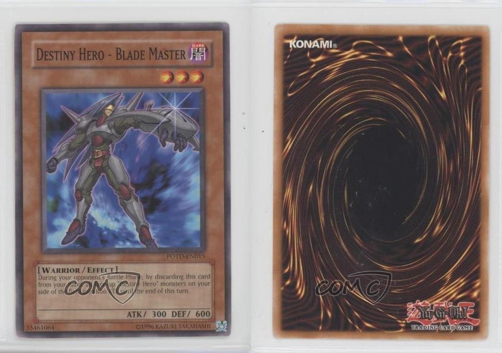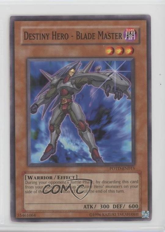 2006 Yu-Gi-Oh! Power of the Duelist - Booster Pack [Base] - Unlimited #POTD-EN015 Destiny Hero - Blade Master COMC Item: 175266886 - YuGiOh Card - Featuring Destiny Hero - Blade Master Search for more: 2006 Yu-Gi-Oh! Power of the Duelist Search for more: 2006 Yu-Gi-Oh! Power of the Duelist - Booster Pack [Base] - Unlimited View all of our Listings Auctions Buy It Now About Us Located in the beautiful Pacific Northwest, COMC (Check Out My Cards) is the world's largest consignment service for trading card singles. More than 10,000 people have used our consignment service to list over 50 million trading cards. Find out how we can help you consign your items on eBay by contacting us through eBay messaging. COMC -- "The Safe & Easy Way to Buy & Sell" Raw Condition for Modern Cards Unless otherwise noted, raw modern cards are listed in Near Mint-Mint condition or better. A NM-MT card appears to be Mint at first glance, but upon closer inspection, may exhibit some of the following: minor print defects (e.g. roller marks, print line, dimple), minor scratches, slight edge wear, and slight corner wear. Centering is clearly visible in the images provided and does not factor into our condition assessment. Raw Condition for Vintage Cards Unless otherwise noted, raw vintage cards are listed in Excellent condition or better. An EX card may exhibit some of the following: minor rounding of corners, surface wear, print defects, light scratches, and slight edge wear/chipping. Centering is clearly visible in the images provided and does not factor into our condition assessment. Domestic Shipping Combined shipping for multiple items is available. To receive combined shipping, please ensure all desired items are in your eBay shopping cart before proceeding to checkout. eBay limits orders to 40 items per order. We automatically combine multiple orders placed on the same day. If you place multiple orders on the same day, please contact us to request a refund of applicable shipping costs. Signature confirmation may be required on invoices over $400. All cards are protected and shipped securely. International Shipping COMC offers eBay's International Shipping (EIS) for international orders under $2,500* (see country exceptions below). All duties and import fees are paid at checkout; in the rare event that there are additional import fees upon delivery, these are borne by the buyer. EIS packages route through a shipping hub in Erlanger, KY before shipping to their final destination. Please note that EIS does not allow for combined shipments. The shipping rates are determined by eBay and cannot be adjusted. *Maximum sale price exceptions: Colombia, Kuwait ($2,000); Taiwan ($1,539); Chile, Costa Rica, Guatemala, Honduras, Trinidad and Tobago ($1,000); Antigua and Barbuda, Aruba, Belize, Dominica, Grenada, Philippines, Saint Kitts and Nevis, Saint Lucia, Montserrat, Turks and Caicos Islands ($500); Dominican Republic, El Salvador ($200). Please request a shipping quote through eBay messaging for orders that exceed the maximum sale price supported by eBay's International Shipping. You will be responsible for all duties and import fees for international orders shipped outside the EIS. All cards are protected and shipped securely. Payment COMC does not accept offers on our cards through our eBay storefront. COMC utilizes eBay’s managed payments system. If you are experiencing difficulties making a payment, please contact eBay for assistance. Return Policy Returns are only accepted on the rare occasion the item is not as described. If you are making a return, please initiate the return process through eBay so a mailing label can be provided for you. Prior to listing, our expert team carefully assessed this item to represent it accurately. Please review the description and high-definition images prior to purchasing to ensure this item meets your satisfaction. We welcome you to contact us if you have further questions about this item. Trust and Integrity COMC carefully assesses each item consigned to us to prevent fraudulent items from entering the marketplace. If you believe an item offered on COMC may be fraudulent, please contact us with details so we can investigate the issue. Items we determine are outside our supported items policy may be removed. Last Modified: 5/23/2025 12:02:42 AM PDT