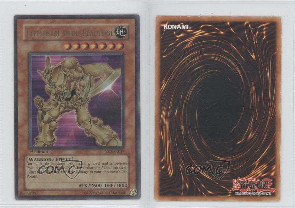 2006 Yu-Gi-Oh! - Starter Deck [Base] - 1st Edition #YSD-EN019 Elemental HERO Bladedge COMC Item: 6957522 - YuGiOh Card - Featuring Elemental HERO Bladedge Search for more: 2006 Yu-Gi-Oh! Search for more: 2006 Yu-Gi-Oh! - Starter Deck [Base] - 1st Edition View all of our Listings Auctions Buy It Now About Us Located in the beautiful Pacific Northwest, COMC (Check Out My Cards) is the world's largest consignment service for trading card singles. More than 10,000 people have used our consignment service to list over 50 million trading cards. Find out how we can help you consign your items on eBay by contacting us through eBay messaging. COMC -- "The Safe & Easy Way to Buy & Sell" Raw Condition for Modern Cards Unless otherwise noted, raw modern cards are listed in Near Mint-Mint condition or better. A NM-MT card appears to be Mint at first glance, but upon closer inspection, may exhibit some of the following: minor print defects (e.g. roller marks, print line, dimple), minor scratches, slight edge wear, and slight corner wear. Centering is clearly visible in the images provided and does not factor into our condition assessment. Raw Condition for Vintage Cards Unless otherwise noted, raw vintage cards are listed in Excellent condition or better. An EX card may exhibit some of the following: minor rounding of corners, surface wear, print defects, light scratches, and slight edge wear/chipping. Centering is clearly visible in the images provided and does not factor into our condition assessment. Domestic Shipping Combined shipping for multiple items is available. To receive combined shipping, please ensure all desired items are in your eBay shopping cart before proceeding to checkout. eBay limits orders to 40 items per order. We automatically combine multiple orders placed on the same day. If you place multiple orders on the same day, please contact us to request a refund of applicable shipping costs. Signature confirmation may be required on invoices over $400. All cards are protected and shipped securely. International Shipping COMC offers eBay's International Shipping (EIS) for international orders under $2,500* (see country exceptions below). All duties and import fees are paid at checkout; in the rare event that there are additional import fees upon delivery, these are borne by the buyer. EIS packages route through a shipping hub in Erlanger, KY before shipping to their final destination. Please note that EIS does not allow for combined shipments. The shipping rates are determined by eBay and cannot be adjusted. *Maximum sale price exceptions: Colombia, Kuwait ($2,000); Taiwan ($1,539); Chile, Costa Rica, Guatemala, Honduras, Trinidad and Tobago ($1,000); Antigua and Barbuda, Aruba, Belize, Dominica, Grenada, Philippines, Saint Kitts and Nevis, Saint Lucia, Montserrat, Turks and Caicos Islands ($500); Dominican Republic, El Salvador ($200). Please request a shipping quote through eBay messaging for orders that exceed the maximum sale price supported by eBay's International Shipping. You will be responsible for all duties and import fees for international orders shipped outside the EIS. All cards are protected and shipped securely. Payment COMC does not accept offers on our cards through our eBay storefront. COMC utilizes eBay’s managed payments system. If you are experiencing difficulties making a payment, please contact eBay for assistance. Return Policy Returns are only accepted on the rare occasion the item is not as described. If you are making a return, please initiate the return process through eBay so a mailing label can be provided for you. Prior to listing, our expert team carefully assessed this item to represent it accurately. Please review the description and high-definition images prior to purchasing to ensure this item meets your satisfaction. We welcome you to contact us if you have further questions about this item. Trust and Integrity COMC carefully assesses each item consigned to us to prevent fraudulent items from entering the marketplace. If you believe an item offered on COMC may be fraudulent, please contact us with details so we can investigate the issue. Items we determine are outside our supported items policy may be removed. Last Modified: 5/21/2025 8:59:17 AM PDT