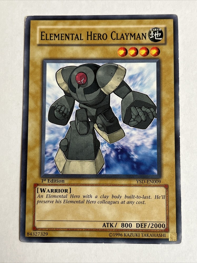 2006 Yu-Gi-Oh! Starter Deck 1st Elemental HERO Clayman YSD-EN009 LP. Condition is Ungraded. Shipped with Canada Post Regular Parcel. Free lettermail Shipping within Canada. For US customers lettermail is $0.36. - discounts of 1$/card for orders more than 1 card. Orders over $30 require tracked/insured shipping