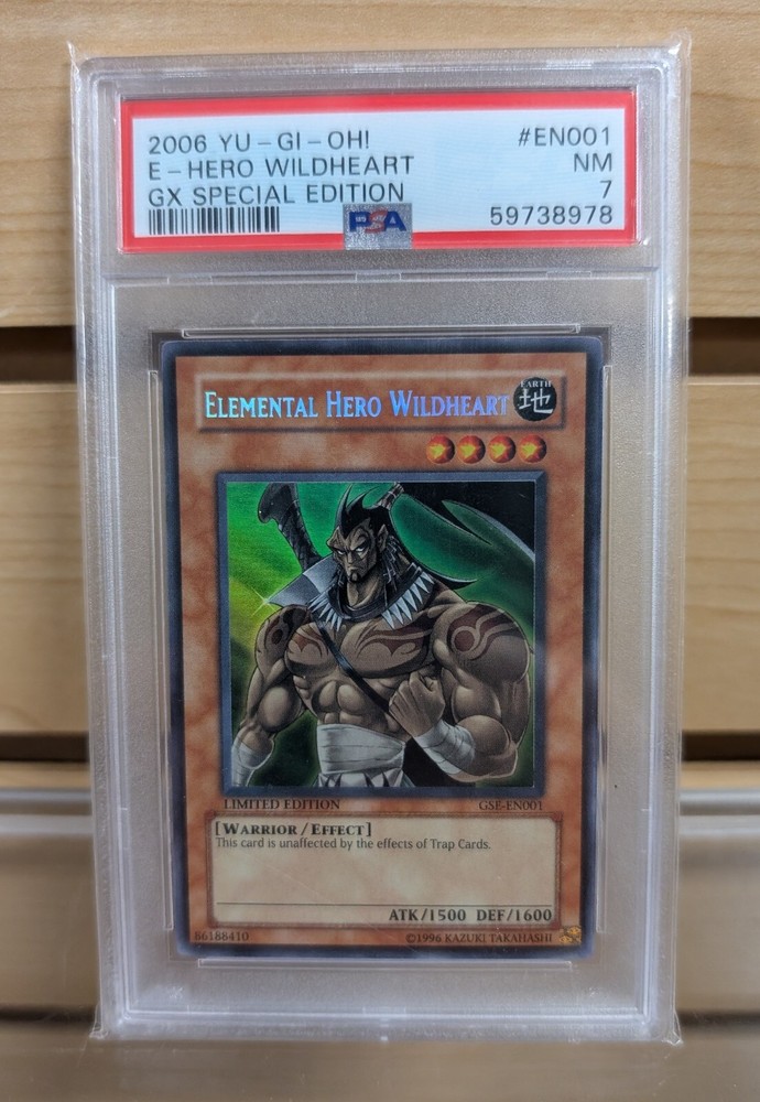 This 2006 Yu-Gi-Oh! TCG card, Elemental HERO Wildheart, is a great addition to any collector's deck. With a standard size and card stock material, this PSA 7 graded card is perfect for fans of the game. The card features an English language description and was manufactured by Konami. As a collectible card game individual card, it is perfect for players and collectors alike. The card is not autographed and is ideal for those who are looking for a specific card to complete their collection. Get your hands on this rare card today!