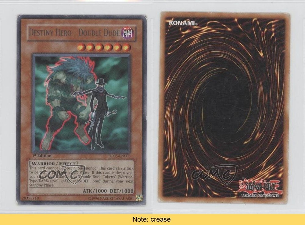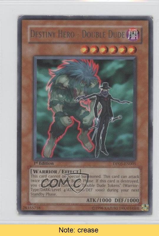 2007 Yu-Gi-Oh! Aster Phoenix - Duelist Pack [Base] - 1st Edition #DP05-EN005 Destiny HERO - Double Dude COMC Item: 9916589 CONDITION NOTE: crease - YuGiOh Card - Featuring Destiny HERO - Double Dude Search for more: 2007 Yu-Gi-Oh! Aster Phoenix Search for more: 2007 Yu-Gi-Oh! Aster Phoenix - Duelist Pack [Base] - 1st Edition View all of our Listings Auctions Buy It Now About Us Located in the beautiful Pacific Northwest, COMC (Check Out My Cards) is the world's largest consignment service for trading card singles. More than 10,000 people have used our consignment service to list over 50 million trading cards. Find out how we can help you consign your items on eBay by contacting us through eBay messaging. COMC -- "The Safe & Easy Way to Buy & Sell" Raw Condition for Modern Cards Unless otherwise noted, raw modern cards are listed in Near Mint-Mint condition or better. A NM-MT card appears to be Mint at first glance, but upon closer inspection, may exhibit some of the following: minor print defects (e.g. roller marks, print line, dimple), minor scratches, slight edge wear, and slight corner wear. Centering is clearly visible in the images provided and does not factor into our condition assessment. Raw Condition for Vintage Cards Unless otherwise noted, raw vintage cards are listed in Excellent condition or better. An EX card may exhibit some of the following: minor rounding of corners, surface wear, print defects, light scratches, and slight edge wear/chipping. Centering is clearly visible in the images provided and does not factor into our condition assessment. Domestic Shipping Combined shipping for multiple items is available. To receive combined shipping, please ensure all desired items are in your eBay shopping cart before proceeding to checkout. eBay limits orders to 40 items per order. We automatically combine multiple orders placed on the same day. If you place multiple orders on the same day, please contact us to request a refund of applicable shipping costs. Signature confirmation may be required on invoices over $400. All cards are protected and shipped securely. International Shipping COMC offers eBay's International Shipping (EIS) for international orders under $2,500* (see country exceptions below). All duties and import fees are paid at checkout; in the rare event that there are additional import fees upon delivery, these are borne by the buyer. EIS packages route through a shipping hub in Erlanger, KY before shipping to their final destination. Please note that EIS does not allow for combined shipments. The shipping rates are determined by eBay and cannot be adjusted. *Maximum sale price exceptions: Colombia, Kuwait ($2,000); Taiwan ($1,539); Chile, Costa Rica, Guatemala, Honduras, Trinidad and Tobago ($1,000); Antigua and Barbuda, Aruba, Belize, Dominica, Grenada, Philippines, Saint Kitts and Nevis, Saint Lucia, Montserrat, Turks and Caicos Islands ($500); Dominican Republic, El Salvador ($200). Please request a shipping quote through eBay messaging for orders that exceed the maximum sale price supported by eBay's International Shipping. You will be responsible for all duties and import fees for international orders shipped outside the EIS. All cards are protected and shipped securely. Payment COMC does not accept offers on our cards through our eBay storefront. COMC utilizes eBay’s managed payments system. If you are experiencing difficulties making a payment, please contact eBay for assistance. Return Policy Returns are only accepted on the rare occasion the item is not as described. If you are making a return, please initiate the return process through eBay so a mailing label can be provided for you. Prior to listing, our expert team carefully assessed this item to represent it accurately. Please review the description and high-definition images prior to purchasing to ensure this item meets your satisfaction. We welcome you to contact us if you have further questions about this item. Trust and Integrity COMC carefully assesses each item consigned to us to prevent fraudulent items from entering the marketplace. If you believe an item offered on COMC may be fraudulent, please contact us with details so we can investigate the issue. Items we determine are outside our supported items policy may be removed. Last Modified: 6/14/2025 12:11:19 AM PDT