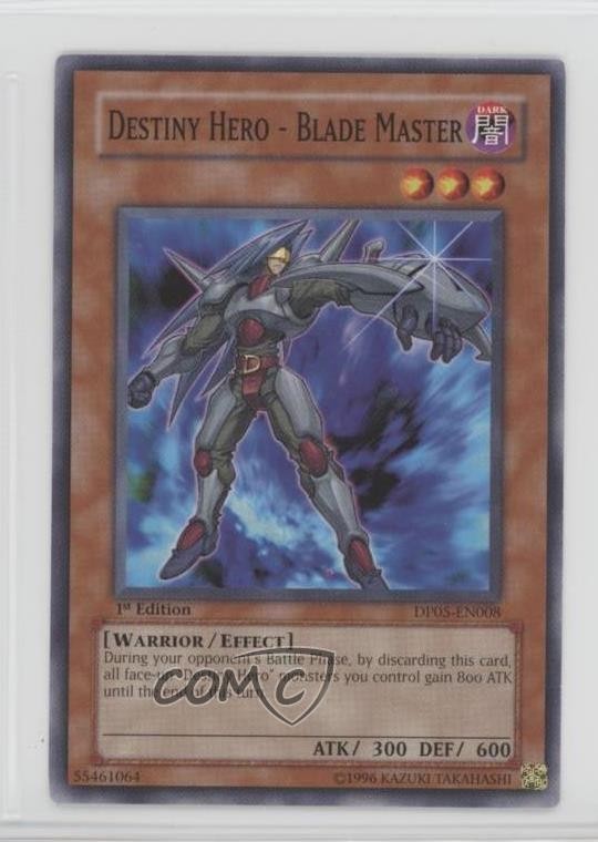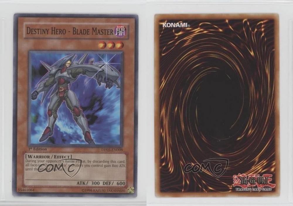 2007 Yu-Gi-Oh! Aster Phoenix - Duelist Pack [Base] - 1st Edition #DP05-EN008 Destiny Hero - Blade Master COMC Item: 195876712 - YuGiOh Card - Featuring Destiny Hero - Blade Master Search for more: 2007 Yu-Gi-Oh! Aster Phoenix Search for more: 2007 Yu-Gi-Oh! Aster Phoenix - Duelist Pack [Base] - 1st Edition View all of our Listings Auctions Buy It Now About Us Located in the beautiful Pacific Northwest, COMC (Check Out My Cards) is the world's largest consignment service for trading card singles. More than 10,000 people have used our consignment service to list over 50 million trading cards. Find out how we can help you consign your items on eBay by contacting us through eBay messaging. COMC -- "The Safe & Easy Way to Buy & Sell" Raw Condition for Modern Cards Unless otherwise noted, raw modern cards are listed in Near Mint-Mint condition or better. A NM-MT card appears to be Mint at first glance, but upon closer inspection, may exhibit some of the following: minor print defects (e.g. roller marks, print line, dimple), minor scratches, slight edge wear, and slight corner wear. Centering is clearly visible in the images provided and does not factor into our condition assessment. Raw Condition for Vintage Cards Unless otherwise noted, raw vintage cards are listed in Excellent condition or better. An EX card may exhibit some of the following: minor rounding of corners, surface wear, print defects, light scratches, and slight edge wear/chipping. Centering is clearly visible in the images provided and does not factor into our condition assessment. Domestic Shipping Combined shipping for multiple items is available. To receive combined shipping, please ensure all desired items are in your eBay shopping cart before proceeding to checkout. eBay limits orders to 40 items per order. We automatically combine multiple orders placed on the same day. If you place multiple orders on the same day, please contact us to request a refund of applicable shipping costs. Signature confirmation may be required on invoices over $400. All cards are protected and shipped securely. International Shipping COMC offers eBay's International Shipping (EIS) for international orders under $2,500* (see country exceptions below). All duties and import fees are paid at checkout; in the rare event that there are additional import fees upon delivery, these are borne by the buyer. EIS packages route through a shipping hub in Erlanger, KY before shipping to their final destination. Please note that EIS does not allow for combined shipments. The shipping rates are determined by eBay and cannot be adjusted. *Maximum sale price exceptions: Colombia, Kuwait ($2,000); Taiwan ($1,539); Chile, Costa Rica, Guatemala, Honduras, Trinidad and Tobago ($1,000); Antigua and Barbuda, Aruba, Belize, Dominica, Grenada, Philippines, Saint Kitts and Nevis, Saint Lucia, Montserrat, Turks and Caicos Islands ($500); Dominican Republic, El Salvador ($200). Please request a shipping quote through eBay messaging for orders that exceed the maximum sale price supported by eBay's International Shipping. You will be responsible for all duties and import fees for international orders shipped outside the EIS. All cards are protected and shipped securely. Payment COMC does not accept offers on our cards through our eBay storefront. COMC utilizes eBay’s managed payments system. If you are experiencing difficulties making a payment, please contact eBay for assistance. Return Policy Returns are only accepted on the rare occasion the item is not as described. If you are making a return, please initiate the return process through eBay so a mailing label can be provided for you. Prior to listing, our expert team carefully assessed this item to represent it accurately. Please review the description and high-definition images prior to purchasing to ensure this item meets your satisfaction. We welcome you to contact us if you have further questions about this item. Trust and Integrity COMC carefully assesses each item consigned to us to prevent fraudulent items from entering the marketplace. If you believe an item offered on COMC may be fraudulent, please contact us with details so we can investigate the issue. Items we determine are outside our supported items policy may be removed. Last Modified: 5/9/2025 3:50:59 AM PDT