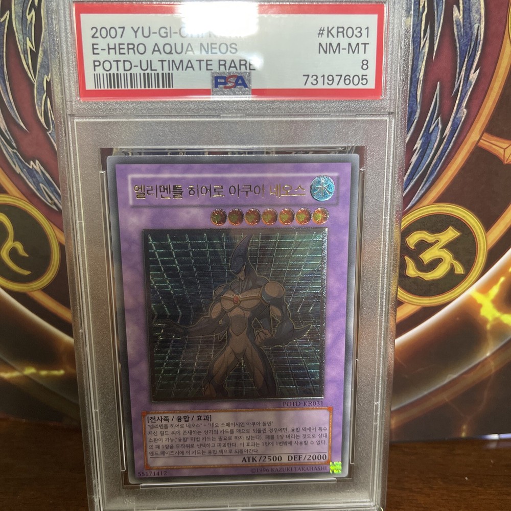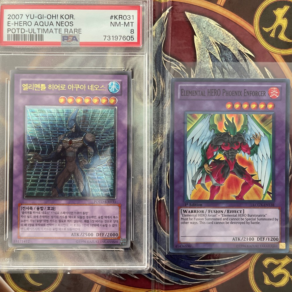 2007 Yu-Gi-Oh! Korean Elemental Hero Aqua Neos PSA 8 POTD-KR031 Ultimate Rare. Elemental Hero Phoenix Enforcer 1st Edition Super Rare.