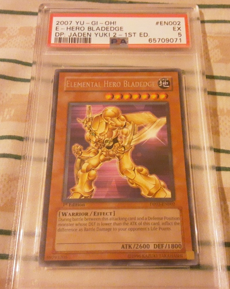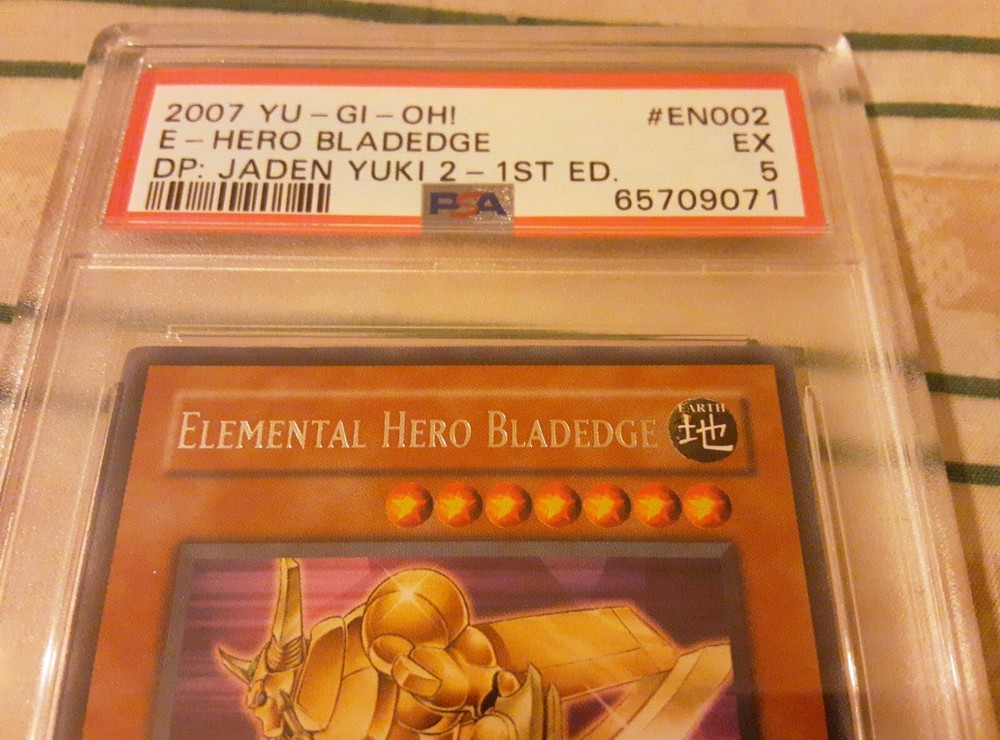 2007 Yugioh Elemental Hero Bladedge DP: Jaden Yuki 2 1st Edition - PSA 5 EX. Condition is Used. Shipped with USPS First Class