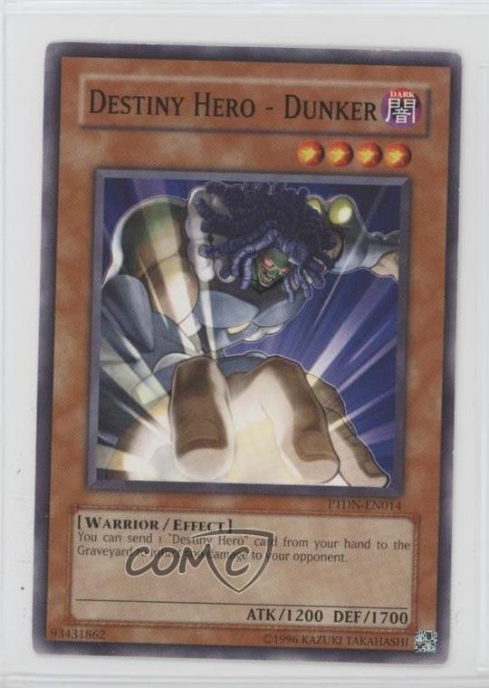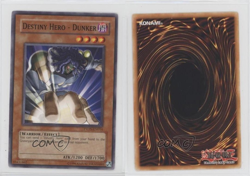 2008 Yu-Gi-Oh! Phantom Darkness - Booster Pack [Base] - Unlimited #PTDN-EN014 Destiny Hero - Dunker COMC Item: 184946886 - YuGiOh Card Search for more: 2008 Yu-Gi-Oh! Phantom Darkness Search for more: 2008 Yu-Gi-Oh! Phantom Darkness - Booster Pack [Base] - Unlimited View all of our Listings Auctions Buy It Now About Us Located in the beautiful Pacific Northwest, COMC (Check Out My Cards) is the world's largest consignment service for trading card singles. More than 10,000 people have used our consignment service to list over 50 million trading cards. Find out how we can help you consign your items on eBay by contacting us through eBay messaging. COMC -- "The Safe & Easy Way to Buy & Sell" Raw Condition for Modern Cards Unless otherwise noted, raw modern cards are listed in Near Mint-Mint condition or better. A NM-MT card appears to be Mint at first glance, but upon closer inspection, may exhibit some of the following: minor print defects (e.g. roller marks, print line, dimple), minor scratches, slight edge wear, and slight corner wear. Centering is clearly visible in the images provided and does not factor into our condition assessment. Raw Condition for Vintage Cards Unless otherwise noted, raw vintage cards are listed in Excellent condition or better. An EX card may exhibit some of the following: minor rounding of corners, surface wear, print defects, light scratches, and slight edge wear/chipping. Centering is clearly visible in the images provided and does not factor into our condition assessment. Domestic Shipping Combined shipping for multiple items is available. To receive combined shipping, please ensure all desired items are in your eBay shopping cart before proceeding to checkout. eBay limits orders to 40 items per order. We automatically combine multiple orders placed on the same day. If you place multiple orders on the same day, please contact us to request a refund of applicable shipping costs. Signature confirmation may be required on invoices over $400. All cards are protected and shipped securely. International Shipping COMC offers eBay's International Shipping (EIS) for international orders under $2,500* (see country exceptions below). All duties and import fees are paid at checkout; in the rare event that there are additional import fees upon delivery, these are borne by the buyer. EIS packages route through a shipping hub in Erlanger, KY before shipping to their final destination. Please note that EIS does not allow for combined shipments. The shipping rates are determined by eBay and cannot be adjusted. *Maximum sale price exceptions: Colombia, Kuwait ($2,000); Taiwan ($1,539); Chile, Costa Rica, Guatemala, Honduras, Trinidad and Tobago ($1,000); Antigua and Barbuda, Aruba, Belize, Dominica, Grenada, Philippines, Saint Kitts and Nevis, Saint Lucia, Montserrat, Turks and Caicos Islands ($500); Dominican Republic, El Salvador ($200). Please request a shipping quote through eBay messaging for orders that exceed the maximum sale price supported by eBay's International Shipping. You will be responsible for all duties and import fees for international orders shipped outside the EIS. All cards are protected and shipped securely. Payment COMC does not accept offers on our cards through our eBay storefront. COMC utilizes eBay’s managed payments system. If you are experiencing difficulties making a payment, please contact eBay for assistance. Return Policy Returns are only accepted on the rare occasion the item is not as described. If you are making a return, please initiate the return process through eBay so a mailing label can be provided for you. Prior to listing, our expert team carefully assessed this item to represent it accurately. Please review the description and high-definition images prior to purchasing to ensure this item meets your satisfaction. We welcome you to contact us if you have further questions about this item. Trust and Integrity COMC carefully assesses each item consigned to us to prevent fraudulent items from entering the marketplace. If you believe an item offered on COMC may be fraudulent, please contact us with details so we can investigate the issue. Items we determine are outside our supported items policy may be removed. Last Modified: 6/19/2025 11:21:45 PM PDT