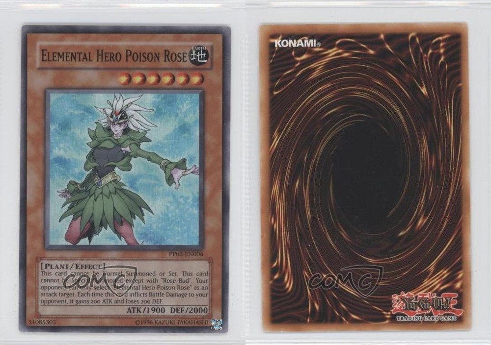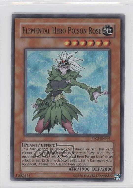 2008 Yu-Gi-Oh! Premium Pack 2 - [Base] #PP02-EN006 Elemental HERO Poison Rose COMC Item: 10942939 - YuGiOh Card - Featuring Elemental HERO Poison Rose Search for more: 2008 Yu-Gi-Oh! Premium Pack 2 Search for more: 2008 Yu-Gi-Oh! Premium Pack 2 - [Base] View all of our Listings Auctions Buy It Now About Us Located in the beautiful Pacific Northwest, COMC (Check Out My Cards) is the world's largest consignment service for trading card singles. More than 10,000 people have used our consignment service to list over 50 million trading cards. Find out how we can help you consign your items on eBay by contacting us through eBay messaging. COMC -- "The Safe & Easy Way to Buy & Sell" Raw Condition for Modern Cards Unless otherwise noted, raw modern cards are listed in Near Mint-Mint condition or better. A NM-MT card appears to be Mint at first glance, but upon closer inspection, may exhibit some of the following: minor print defects (e.g. roller marks, print line, dimple), minor scratches, slight edge wear, and slight corner wear. Centering is clearly visible in the images provided and does not factor into our condition assessment. Raw Condition for Vintage Cards Unless otherwise noted, raw vintage cards are listed in Excellent condition or better. An EX card may exhibit some of the following: minor rounding of corners, surface wear, print defects, light scratches, and slight edge wear/chipping. Centering is clearly visible in the images provided and does not factor into our condition assessment. Domestic Shipping Combined shipping for multiple items is available. To receive combined shipping, please ensure all desired items are in your eBay shopping cart before proceeding to checkout. eBay limits orders to 40 items per order. We automatically combine multiple orders placed on the same day. If you place multiple orders on the same day, please contact us to request a refund of applicable shipping costs. Signature confirmation may be required on invoices over $400. All cards are protected and shipped securely. International Shipping COMC offers eBay's International Shipping (EIS) for international orders under $2,500* (see country exceptions below). All duties and import fees are paid at checkout; in the rare event that there are additional import fees upon delivery, these are borne by the buyer. EIS packages route through a shipping hub in Erlanger, KY before shipping to their final destination. Please note that EIS does not allow for combined shipments. The shipping rates are determined by eBay and cannot be adjusted. *Maximum sale price exceptions: Colombia, Kuwait ($2,000); Taiwan ($1,539); Chile, Costa Rica, Guatemala, Honduras, Trinidad and Tobago ($1,000); Antigua and Barbuda, Aruba, Belize, Dominica, Grenada, Philippines, Saint Kitts and Nevis, Saint Lucia, Montserrat, Turks and Caicos Islands ($500); Dominican Republic, El Salvador ($200). Please request a shipping quote through eBay messaging for orders that exceed the maximum sale price supported by eBay's International Shipping. You will be responsible for all duties and import fees for international orders shipped outside the EIS. All cards are protected and shipped securely. Payment COMC does not accept offers on our cards through our eBay storefront. COMC utilizes eBay’s managed payments system. If you are experiencing difficulties making a payment, please contact eBay for assistance. Return Policy Returns are only accepted on the rare occasion the item is not as described. If you are making a return, please initiate the return process through eBay so a mailing label can be provided for you. Prior to listing, our expert team carefully assessed this item to represent it accurately. Please review the description and high-definition images prior to purchasing to ensure this item meets your satisfaction. We welcome you to contact us if you have further questions about this item. Trust and Integrity COMC carefully assesses each item consigned to us to prevent fraudulent items from entering the marketplace. If you believe an item offered on COMC may be fraudulent, please contact us with details so we can investigate the issue. Items we determine are outside our supported items policy may be removed. Last Modified: 6/13/2025 11:39:19 PM PDT