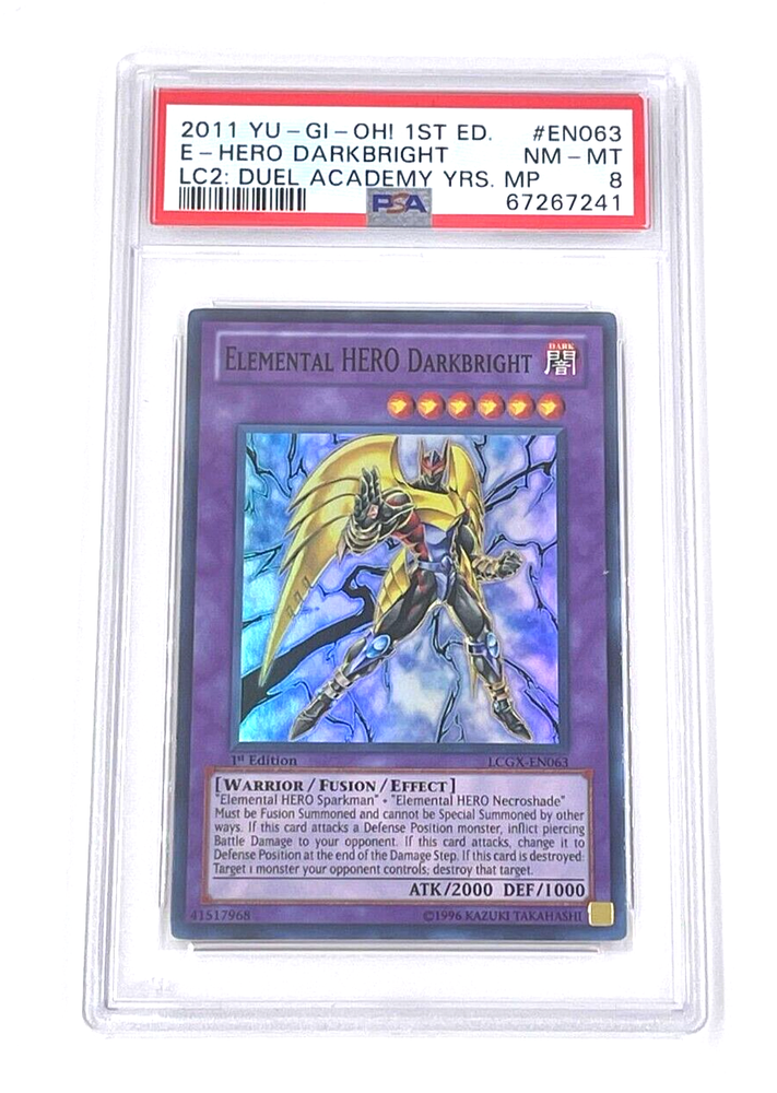 2011 YuGiOh Elemental HERO Darkbright LCGX-EN063 Super Rare 1st Edition PSA 8 Ships in 2 business days