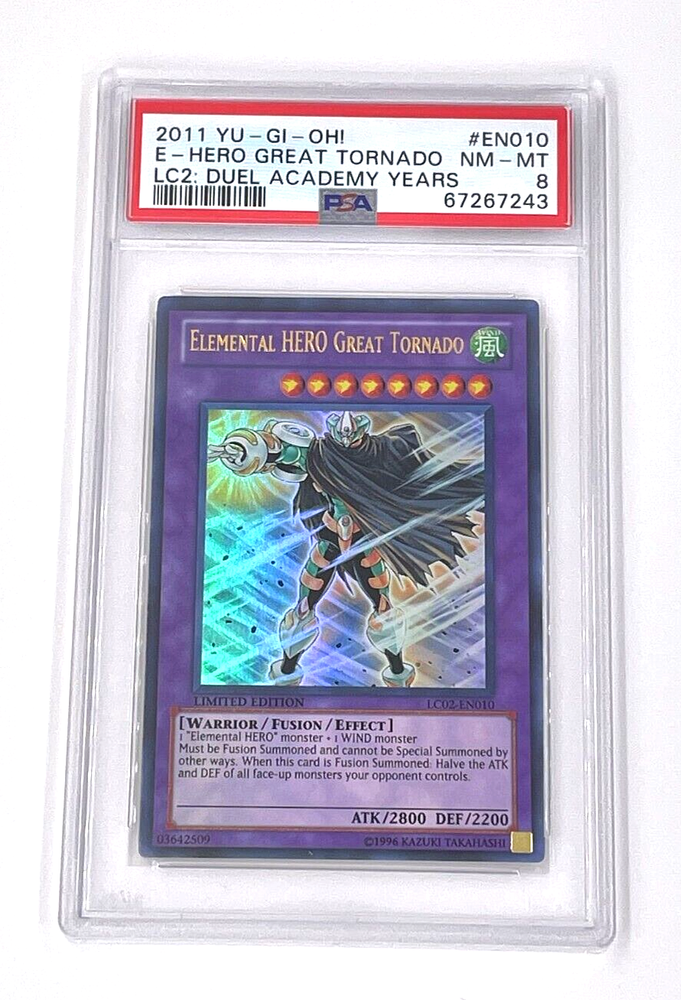 2011 YuGiOh Elemental HERO Great Tornado LC02-EN010 Limited Ultra Rare PSA 8 Ships in 2 business days