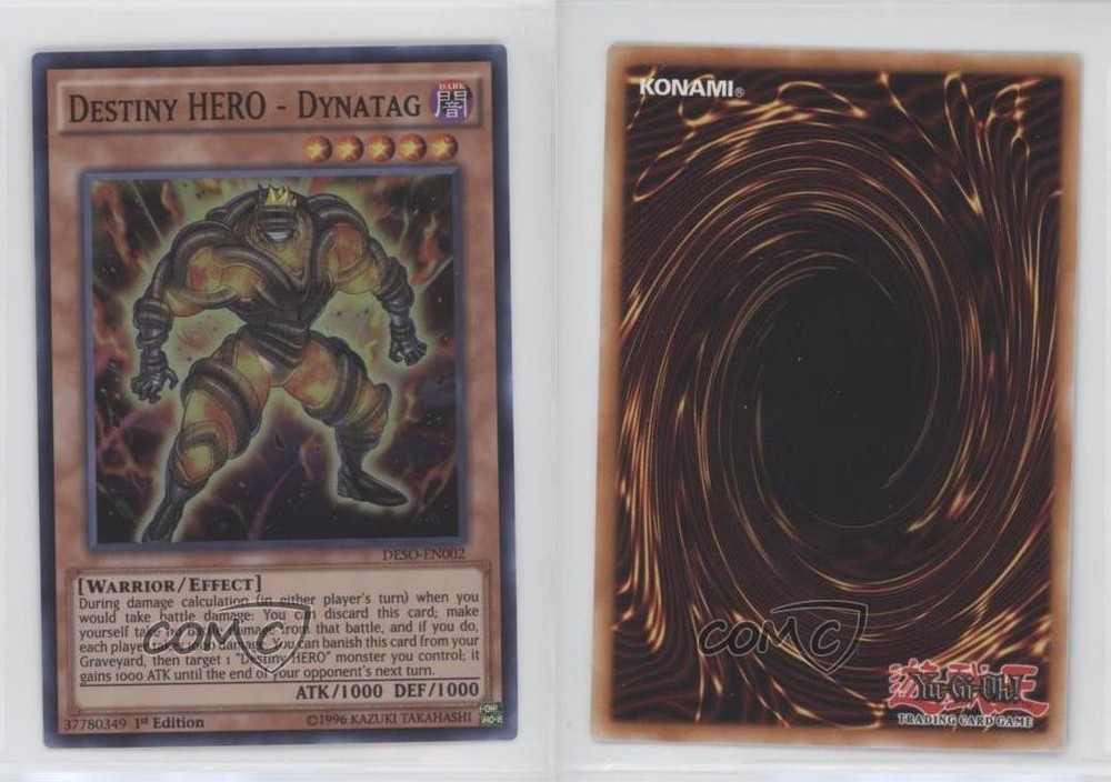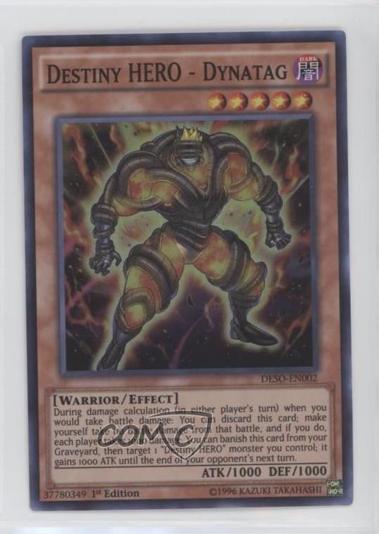 2016 Yu-Gi-Oh! - Destiny Soldiers - [Base] - 1st Edition #DESO-EN002 Super Rare - Destiny HERO - Dynatag COMC Item: 136418010 - YuGiOh Card - Featuring Destiny HERO - Dynatag Search for more: 2016 Yu-Gi-Oh! - Destiny Soldiers Search for more: 2016 Yu-Gi-Oh! - Destiny Soldiers - [Base] - 1st Edition View all of our Listings Auctions Buy It Now About Us Located in the beautiful Pacific Northwest, COMC (Check Out My Cards) is the world's largest consignment service for trading card singles. More than 10,000 people have used our consignment service to list over 50 million trading cards. Find out how we can help you consign your items on eBay by contacting us through eBay messaging. COMC -- "The Safe & Easy Way to Buy & Sell" Raw Condition for Modern Cards Unless otherwise noted, raw modern cards are listed in Near Mint-Mint condition or better. A NM-MT card appears to be Mint at first glance, but upon closer inspection, may exhibit some of the following: minor print defects (e.g. roller marks, print line, dimple), minor scratches, slight edge wear, and slight corner wear. Centering is clearly visible in the images provided and does not factor into our condition assessment. Raw Condition for Vintage Cards Unless otherwise noted, raw vintage cards are listed in Excellent condition or better. An EX card may exhibit some of the following: minor rounding of corners, surface wear, print defects, light scratches, and slight edge wear/chipping. Centering is clearly visible in the images provided and does not factor into our condition assessment. Domestic Shipping Combined shipping for multiple items is available. To receive combined shipping, please ensure all desired items are in your eBay shopping cart before proceeding to checkout. eBay limits orders to 40 items per order. We automatically combine multiple orders placed on the same day. If you place multiple orders on the same day, please contact us to request a refund of applicable shipping costs. Signature confirmation may be required on invoices over $400. All cards are protected and shipped securely. International Shipping COMC offers eBay's International Shipping (EIS) for international orders under $2,500* (see country exceptions below). All duties and import fees are paid at checkout; in the rare event that there are additional import fees upon delivery, these are borne by the buyer. EIS packages route through a shipping hub in Erlanger, KY before shipping to their final destination. Please note that EIS does not allow for combined shipments. The shipping rates are determined by eBay and cannot be adjusted. *Maximum sale price exceptions: Colombia, Kuwait ($2,000); Taiwan ($1,539); Chile, Costa Rica, Guatemala, Honduras, Trinidad and Tobago ($1,000); Antigua and Barbuda, Aruba, Belize, Dominica, Grenada, Philippines, Saint Kitts and Nevis, Saint Lucia, Montserrat, Turks and Caicos Islands ($500); Dominican Republic, El Salvador ($200). Please request a shipping quote through eBay messaging for orders that exceed the maximum sale price supported by eBay's International Shipping. You will be responsible for all duties and import fees for international orders shipped outside the EIS. All cards are protected and shipped securely. Payment COMC does not accept offers on our cards through our eBay storefront. COMC utilizes eBay’s managed payments system. If you are experiencing difficulties making a payment, please contact eBay for assistance. Return Policy Returns are only accepted on the rare occasion the item is not as described. If you are making a return, please initiate the return process through eBay so a mailing label can be provided for you. Prior to listing, our expert team carefully assessed this item to represent it accurately. Please review the description and high-definition images prior to purchasing to ensure this item meets your satisfaction. We welcome you to contact us if you have further questions about this item. Trust and Integrity COMC carefully assesses each item consigned to us to prevent fraudulent items from entering the marketplace. If you believe an item offered on COMC may be fraudulent, please contact us with details so we can investigate the issue. Items we determine are outside our supported items policy may be removed. Last Modified: 6/30/2025 4:12:50 PM PDT