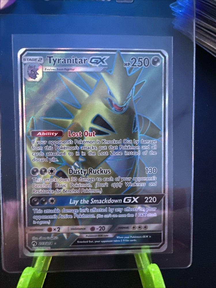 2018 POKEMON SUN & MOON LOST THUNDER 203 FULL ART/TYRANITAR GX PSA 10 If you are concerned about any marks on the case that may not show in up in the scans that PSA has provided, then please send me a message for additional pictures before buying!