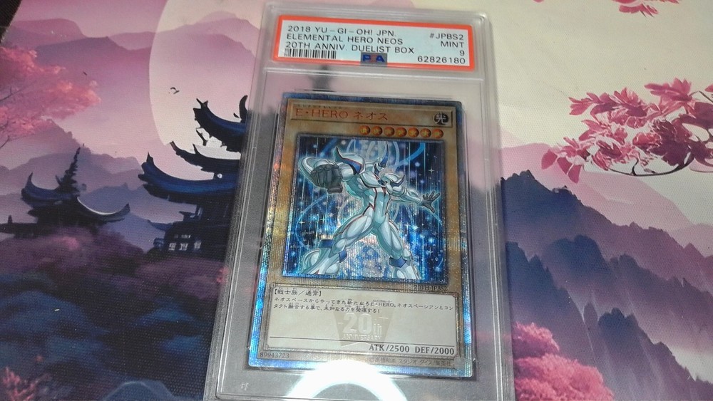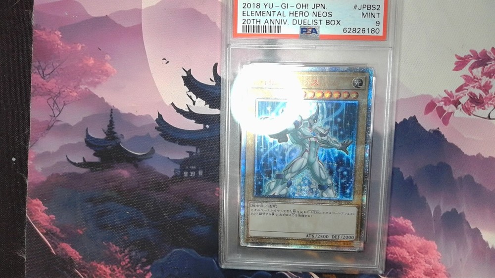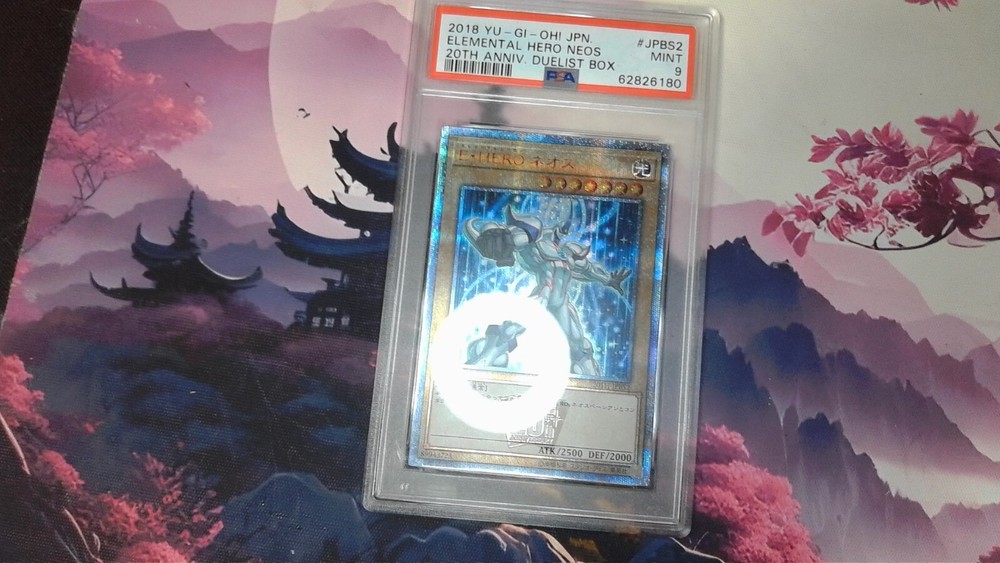 This is a rare and highly sought-after 2018 Yu-Gi-Oh! Japanese 20th Anniv Duelist Box Elemental Hero Neos PSA 9 M000000INT trading card. It features the iconic Elemental HERO Neos character from the Yu-Gi-Oh! TCG game, manufactured by Konami. The card is made of high-quality card stock material and has been graded as PSA 9 MINT, ensuring its authenticity and value. It's a perfect addition to any Yu-Gi-Oh! fan's collection, with its Japanese card size and stunning design. The card is not autographed and is a non-sport trading card type, suitable for all ages. Get your hands on this collectible card, which celebrates the 20th anniversary of the Yu-Gi-Oh! franchise and features the popular TV show theme. Don't miss out on this opportunity to own a piece of Yu-Gi-Oh! history!