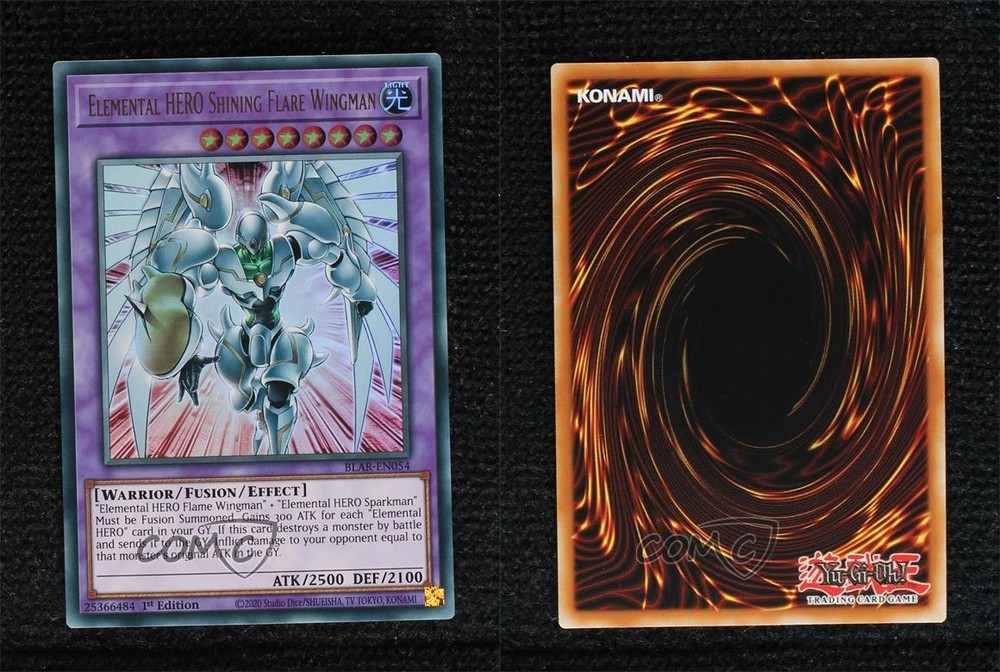 2020 Yu-Gi-Oh! Battles of Legends: Armageddon - [Base] - 1st Edition #BLAR-EN054 Ultra Rare - Elemental HERO Shining Flare Wingman COMC Item: 164948841 - YuGiOh Card - Featuring Elemental HERO Shining Flare Wingman Search for more: 2020 Yu-Gi-Oh! Battles of Legends: Armageddon Search for more: 2020 Yu-Gi-Oh! Battles of Legends: Armageddon - [Base] - 1st Edition View all of our Listings Auctions Buy It Now About Us Located in the beautiful Pacific Northwest, COMC (Check Out My Cards) is the world's largest consignment service for trading card singles. More than 10,000 people have used our consignment service to list over 50 million trading cards. Find out how we can help you consign your items on eBay by contacting us through eBay messaging. COMC -- "The Safe & Easy Way to Buy & Sell" Raw Condition for Modern Cards Unless otherwise noted, raw modern cards are listed in Near Mint-Mint condition or better. A NM-MT card appears to be Mint at first glance, but upon closer inspection, may exhibit some of the following: minor print defects (e.g. roller marks, print line, dimple), minor scratches, slight edge wear, and slight corner wear. Centering is clearly visible in the images provided and does not factor into our condition assessment. Raw Condition for Vintage Cards Unless otherwise noted, raw vintage cards are listed in Excellent condition or better. An EX card may exhibit some of the following: minor rounding of corners, surface wear, print defects, light scratches, and slight edge wear/chipping. Centering is clearly visible in the images provided and does not factor into our condition assessment. Domestic Shipping Combined shipping for multiple items is available. To receive combined shipping, please ensure all desired items are in your eBay shopping cart before proceeding to checkout. eBay limits orders to 40 items per order. We automatically combine multiple orders placed on the same day. If you place multiple orders on the same day, please contact us to request a refund of applicable shipping costs. Signature confirmation may be required on invoices over $400. All cards are protected and shipped securely. International Shipping COMC offers eBay's International Shipping (EIS) for international orders under $2,500* (see country exceptions below). All duties and import fees are paid at checkout; in the rare event that there are additional import fees upon delivery, these are borne by the buyer. EIS packages route through a shipping hub in Erlanger, KY before shipping to their final destination. Please note that EIS does not allow for combined shipments. The shipping rates are determined by eBay and cannot be adjusted. *Maximum sale price exceptions: Colombia, Kuwait ($2,000); Taiwan ($1,539); Chile, Costa Rica, Guatemala, Honduras, Trinidad and Tobago ($1,000); Antigua and Barbuda, Aruba, Belize, Dominica, Grenada, Philippines, Saint Kitts and Nevis, Saint Lucia, Montserrat, Turks and Caicos Islands ($500); Dominican Republic, El Salvador ($200). Please request a shipping quote through eBay messaging for orders that exceed the maximum sale price supported by eBay's International Shipping. You will be responsible for all duties and import fees for international orders shipped outside the EIS. All cards are protected and shipped securely. Payment COMC does not accept offers on our cards through our eBay storefront. COMC utilizes eBay’s managed payments system. If you are experiencing difficulties making a payment, please contact eBay for assistance. Return Policy Returns are only accepted on the rare occasion the item is not as described. If you are making a return, please initiate the return process through eBay so a mailing label can be provided for you. Prior to listing, our expert team carefully assessed this item to represent it accurately. Please review the description and high-definition images prior to purchasing to ensure this item meets your satisfaction. We welcome you to contact us if you have further questions about this item. Trust and Integrity COMC carefully assesses each item consigned to us to prevent fraudulent items from entering the marketplace. If you believe an item offered on COMC may be fraudulent, please contact us with details so we can investigate the issue. Items we determine are outside our supported items policy may be removed. Last Modified: 5/26/2025 1:03:29 PM PDT