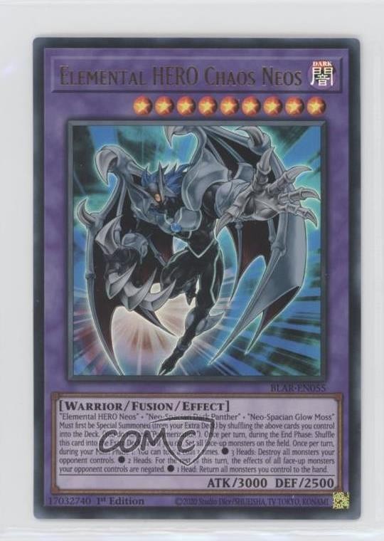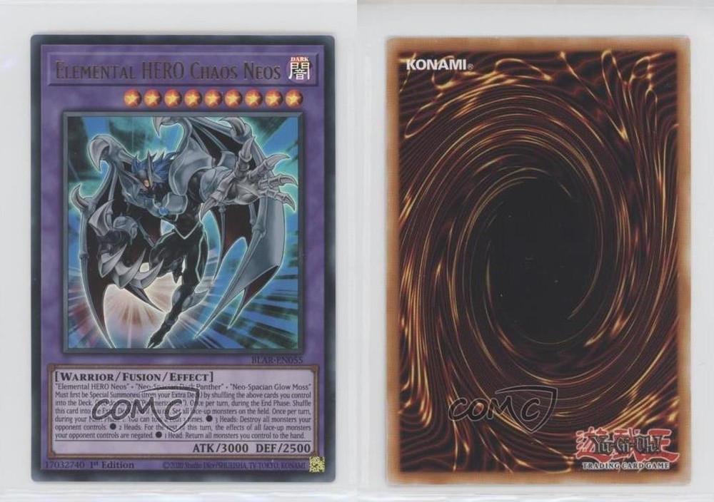 2020 Yu-Gi-Oh! Battles of Legends: Armageddon - [Base] - 1st Edition #BLAR-EN055 Elemental HERO Chaos Neos (UR) COMC Item: 111495222 - YuGiOh Card - Featuring Elemental HERO Chaos Neos Search for more: 2020 Yu-Gi-Oh! Battles of Legends: Armageddon Search for more: 2020 Yu-Gi-Oh! Battles of Legends: Armageddon - [Base] - 1st Edition View all of our Listings Auctions Buy It Now About Us Located in the beautiful Pacific Northwest, COMC (Check Out My Cards) is the world's largest consignment service for trading card singles. More than 10,000 people have used our consignment service to list over 50 million trading cards. Find out how we can help you consign your items on eBay by contacting us through eBay messaging. COMC -- "The Safe & Easy Way to Buy & Sell" Raw Condition for Modern Cards Unless otherwise noted, raw modern cards are listed in Near Mint-Mint condition or better. A NM-MT card appears to be Mint at first glance, but upon closer inspection, may exhibit some of the following: minor print defects (e.g. roller marks, print line, dimple), minor scratches, slight edge wear, and slight corner wear. Centering is clearly visible in the images provided and does not factor into our condition assessment. Raw Condition for Vintage Cards Unless otherwise noted, raw vintage cards are listed in Excellent condition or better. An EX card may exhibit some of the following: minor rounding of corners, surface wear, print defects, light scratches, and slight edge wear/chipping. Centering is clearly visible in the images provided and does not factor into our condition assessment. Domestic Shipping Combined shipping for multiple items is available. To receive combined shipping, please ensure all desired items are in your eBay shopping cart before proceeding to checkout. eBay limits orders to 40 items per order. We automatically combine multiple orders placed on the same day. If you place multiple orders on the same day, please contact us to request a refund of applicable shipping costs. Signature confirmation may be required on invoices over $400. All cards are protected and shipped securely. International Shipping COMC offers eBay's International Shipping (EIS) for international orders under $2,500* (see country exceptions below). All duties and import fees are paid at checkout; in the rare event that there are additional import fees upon delivery, these are borne by the buyer. EIS packages route through a shipping hub in Erlanger, KY before shipping to their final destination. Please note that EIS does not allow for combined shipments. The shipping rates are determined by eBay and cannot be adjusted. *Maximum sale price exceptions: Colombia, Kuwait ($2,000); Taiwan ($1,539); Chile, Costa Rica, Guatemala, Honduras, Trinidad and Tobago ($1,000); Antigua and Barbuda, Aruba, Belize, Dominica, Grenada, Philippines, Saint Kitts and Nevis, Saint Lucia, Montserrat, Turks and Caicos Islands ($500); Dominican Republic, El Salvador ($200). Please request a shipping quote through eBay messaging for orders that exceed the maximum sale price supported by eBay's International Shipping. You will be responsible for all duties and import fees for international orders shipped outside the EIS. All cards are protected and shipped securely. Payment COMC does not accept offers on our cards through our eBay storefront. COMC utilizes eBay’s managed payments system. If you are experiencing difficulties making a payment, please contact eBay for assistance. Return Policy Returns are only accepted on the rare occasion the item is not as described. If you are making a return, please initiate the return process through eBay so a mailing label can be provided for you. Prior to listing, our expert team carefully assessed this item to represent it accurately. Please review the description and high-definition images prior to purchasing to ensure this item meets your satisfaction. We welcome you to contact us if you have further questions about this item. Trust and Integrity COMC carefully assesses each item consigned to us to prevent fraudulent items from entering the marketplace. If you believe an item offered on COMC may be fraudulent, please contact us with details so we can investigate the issue. Items we determine are outside our supported items policy may be removed. Last Modified: 6/11/2025 12:27:50 PM PDT