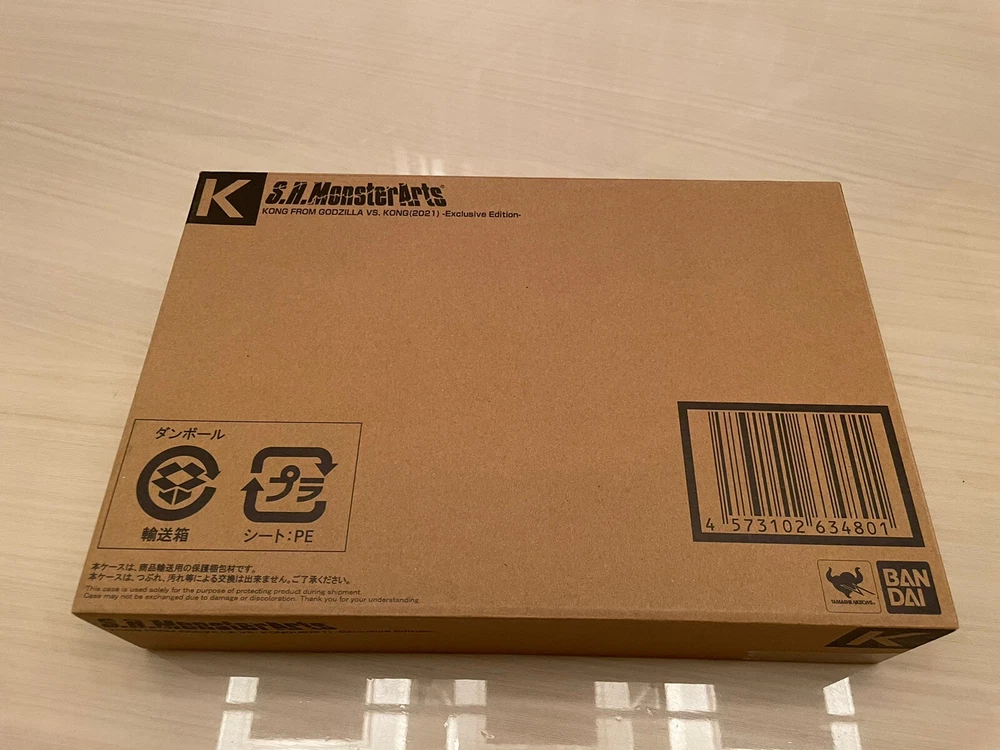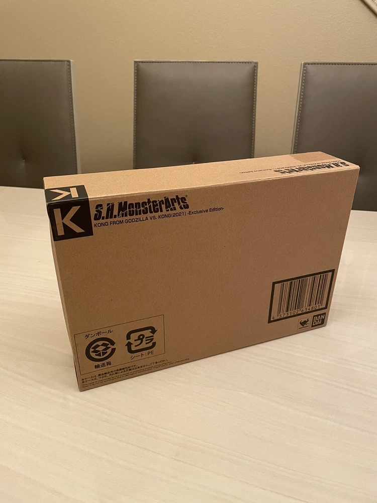 S.H. MonsterArts Kong From Godzilla vs. Kong (2021) exclusive edition figure. Kong features battle damage, a revamped body coloring to reflect the scene in which Kong strikes back against the mecha Godzilla. The figure comes with three uncolored mini-figure “HEAV” crafts that explored the Hollow Earth with Kong, and the specially purposed wire props enable you to create displays freely. On top of that, there is an accessory of the mecha Godzilla’s damaged head, so you can fully reproduce the image of Kong’s majestic victory in the fight. And, in addition to the exchangeable head part with a roaring face, we have included a newly modeled clenched face. Purchased directly myself from San Diego Comic-Con 2022. Box is sealed and unopened in brown shipper. Item will be packaged safely and shipped out following business day.