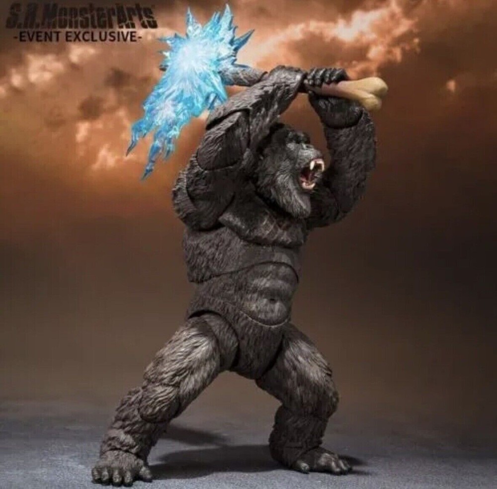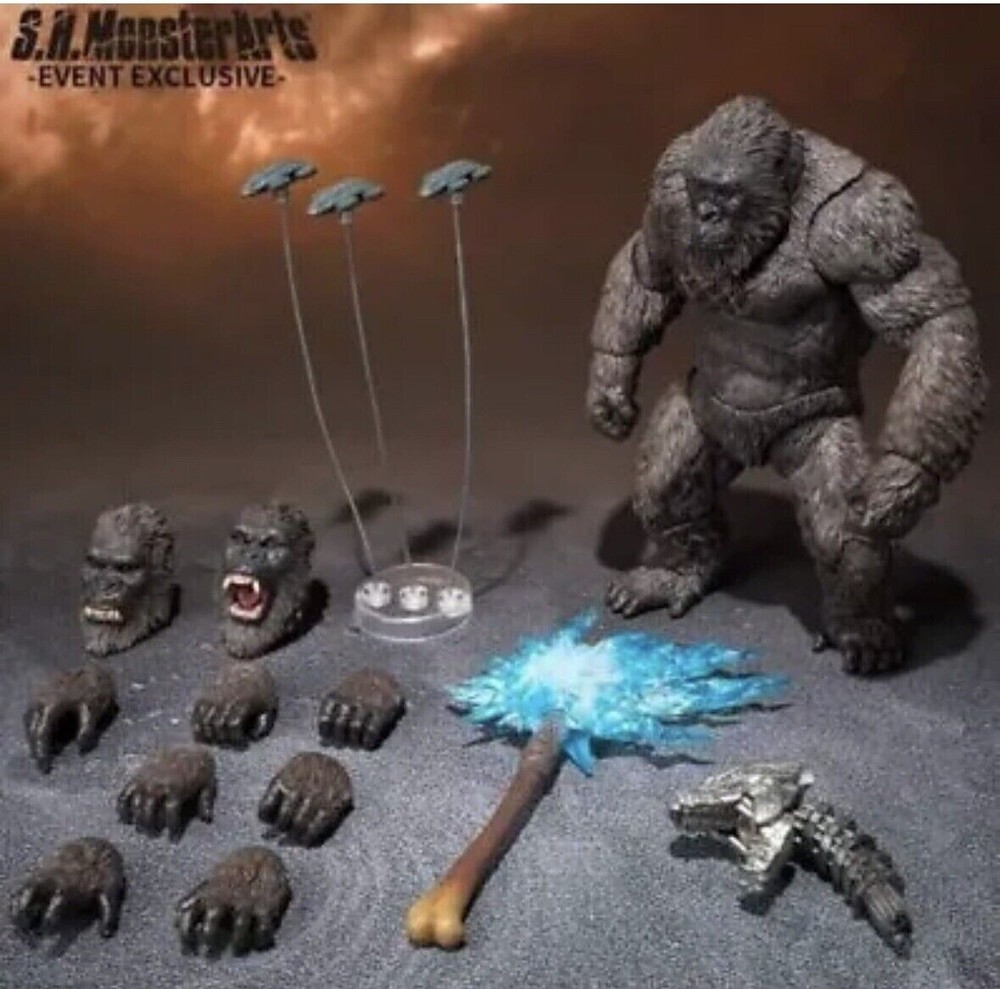 US SELLER In-Hand Ready to ship, Collector grade condition! Up for your consideration is this Brand New Factory boxed sealed Exclusive SH Monster Arts KING KONG TAMASHII NATIONS: SH MONSTER ARTS: FIGURE (EXCLUSIVE EDITION) figure: JAPAN IMPORT Product Description Kong from Godzilla vs. Kong (2021) -Exclusive Edition- is now available from S.H.MonsterArts. Kong’s chest injured in the fight with Godzilla has been produced in 3D with newly modeled parts. What’s more, they’ve revamped the body coloring to look like the image in the final showdown. They've added red staining paint and white shadow to faithfully reproduce the image from the movie. Bandai have reproduced effect parts with coloring a luminous axe that has been hit by Godzilla’s Heat Ray. Reproduce the scene in which Kong strikes back against Mechagodzilla, by attaching the newly modeled effect parts to the axe part. Bandai have included three uncolored, mini-figure “HEAV” crafts that explored the Hollow Earth with Kong, and the specially purposed wire props enable you to create displays freely. On top of that, there is an accessory of Mechagodzilla’s damaged head, so you can fully reproduce the image of Kong’s majestic victory in the fight. And, in addition to the interchangeable head part with a roaring face, they have included a newly modeled clenched face. Product Features 6 inches (15.24cm) Made of plastic From the Godzilla vs. Kong movie Highly articulated Event exclusive version Box Contents Kong figure 2 Head sculpts 3 Pairs of hands Alternate right hand Axe Godzilla's Heat Ray effect Mechagodzilla head part 3 HEAV mini-figures with display stand BRAND NEW IN BOX + all accessories and weapons from a pet free and smoke free home.