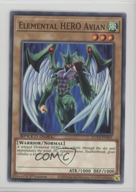 This 1st Edition Elemental HERO Avian from the Speed Duel GX set is a must-have for collectors and duelists! The artwork pops, the card quality is excellent, and it’s a nostalgic throwback to classic Yu-Gi-Oh! battles. Perfect for HERO deck builds or as a display piece. Fast shipping and great condition—highly recommend!