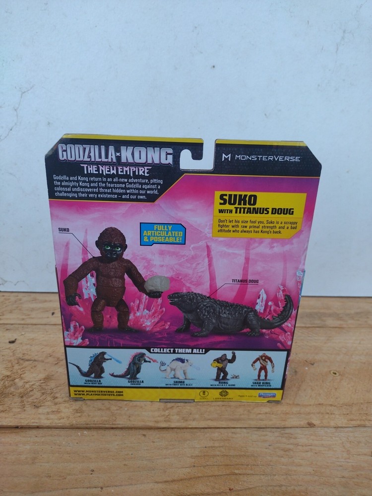 Get ready for an epic battle with the 2024 Godzilla X Kong New Empire SUKO WITH TITANUS DOUG 4" Figure Playmates. This action figure is a must-have for fans of the Godzilla franchise and collectors alike. The figure features intricate details and a scale of 1:12, making it a perfect addition to any collection. With its multicolor design and plastic material, this original, licensed reproduction is sure to impress. The figure showcases SUKO, King Kong, and TITANUS DOUG, along with the Monkey animal species. It's perfect for children aged 4+ and adults alike. Don't miss out on this fantastic opportunity to own a piece of the Godzilla X Kong New Empire series. SKU bt5
